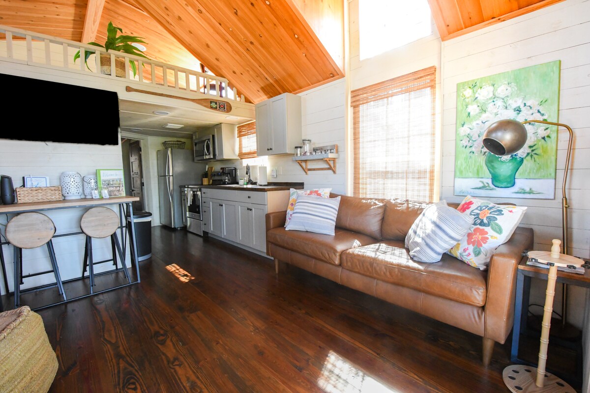 LIBURAN yang sempurna, hanya 15 menit dari Auburn, AL! Rumah Kecil yang indah terletak di lingkungan yang tenang dan damai di dalam Tiny Village. Rumah mungil seluas 240 kaki persegi ini memiliki pohon palem muda yang indah, tempat tidur gantung, lubang api, dan tempat duduk luar ruangan. Nikmati rumah kecil yang terinspirasi "Mimosa" sambil bersantai. Rumah ini memiliki 2 loteng dengan tempat tidur berukuran Queen, seprai lembut dan mewah, bantal empuk, dan bantal empuk. Anda akan menikmati semua kenyamanan rumah sambil terselip di Paradise Tiny Village kami. KOMUNITAS BERPAGAR & AKSES KEYPAD