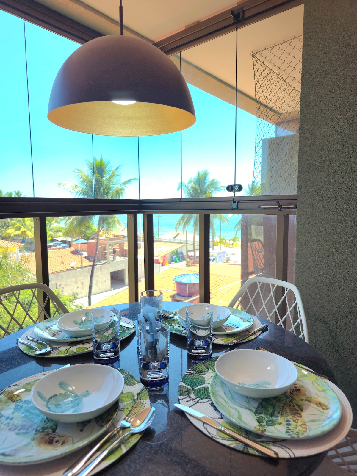 Sorotan akomodasi: - Beachfront dengan balkon menghadap laut - Kolam renang infiniti dan taman yang indah - 550 meter dari Vila do Padre Arlindo - Resepsionis 24 jam - Parkir berputar gratis - Tempat tidur queen - SmartTV 50" dan Wi-Fi di apartemen dan area bersama. - AC Split dapur - Dapur terkompresi lengkap dengan filter air. - Seprai dan handuk mandi lengkap. - Pemadaman Cortina - Gym dan Ruang Bermain - Layanan pantai dengan kursi, meja, dan payung - Dapat menampung hingga 4 orang
