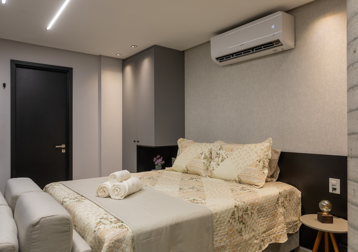 Apartemen 35m² terletak di lokasi terbaik João Pessoa: tepi laut Cabo Branco! Anda akan memiliki apartemen yang sangat nyaman, dengan seprai tempat tidur dan mandi, Wi - Fi, SmarTV, piring, peralatan makan, dan beberapa fasilitas lainnya yang penting untuk kesejahteraan Anda! Area bersama memiliki kolam renang, restoran, tempat parkir, dan ruang pertemuan. Area ini sangat aman dan memiliki akses mudah ke semua yang Anda butuhkan (bar, toko roti, apotek, supermarket, yang terbaik di kota).
