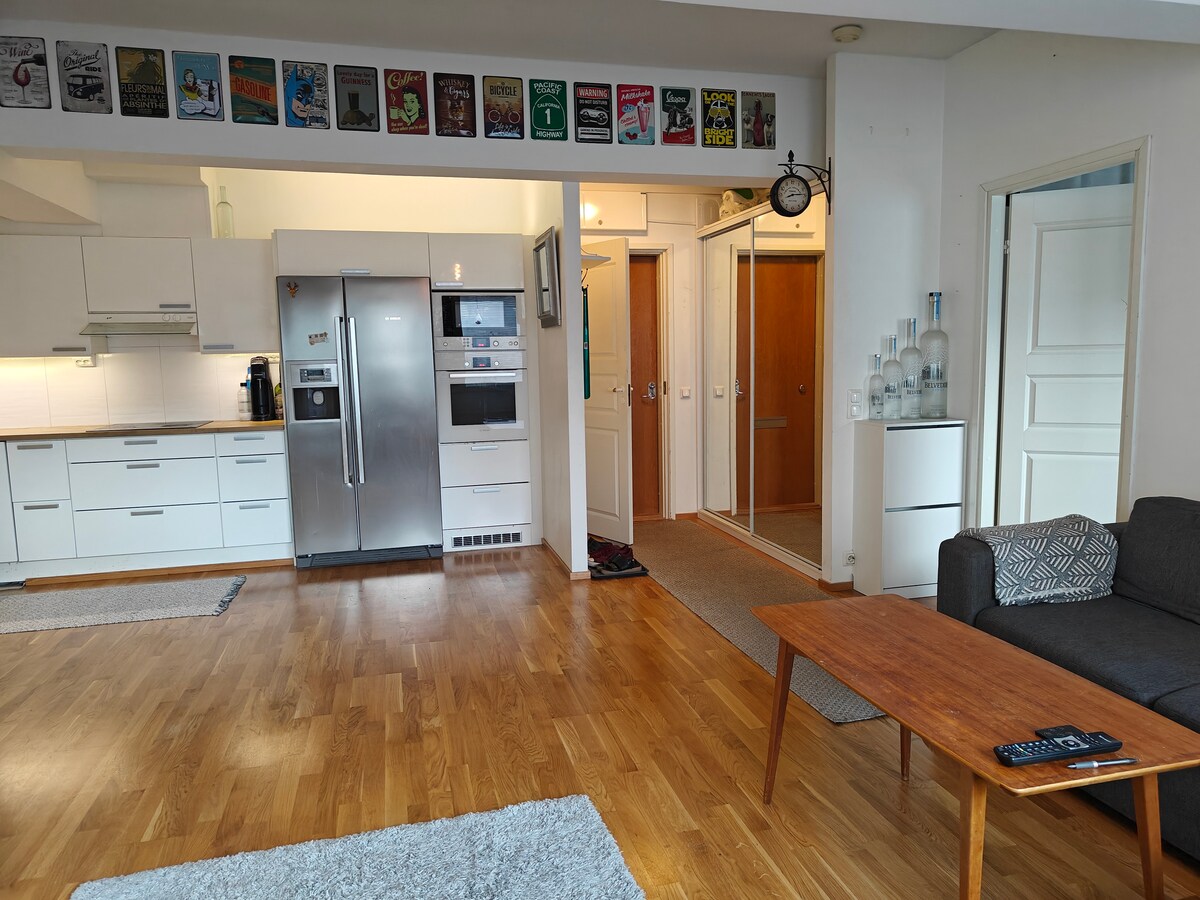 Apartemen loteng dua lantai di antara stasiun kereta api dan landmark terkenal Ilves Hotel. Di lantai bawah terdapat ruang tamu, ruang makan, dapur, dan dua kamar tidur, yang di antaranya terdapat kamar mandi. Ada satu toilet terpisah di lorong. Lantai atas memiliki sauna besar, toilet terpisah, tempat tidur, dan televisi. Lantai atas adalah ruang terbuka. Ruang tidur kedua terlindung dari pandangan oleh tirai. Stasiun 2 menit, Nokia Arena 4 menit, Jalan utama (Hämeenkatu) 1 menit, Hotel Ilves 40 detik.