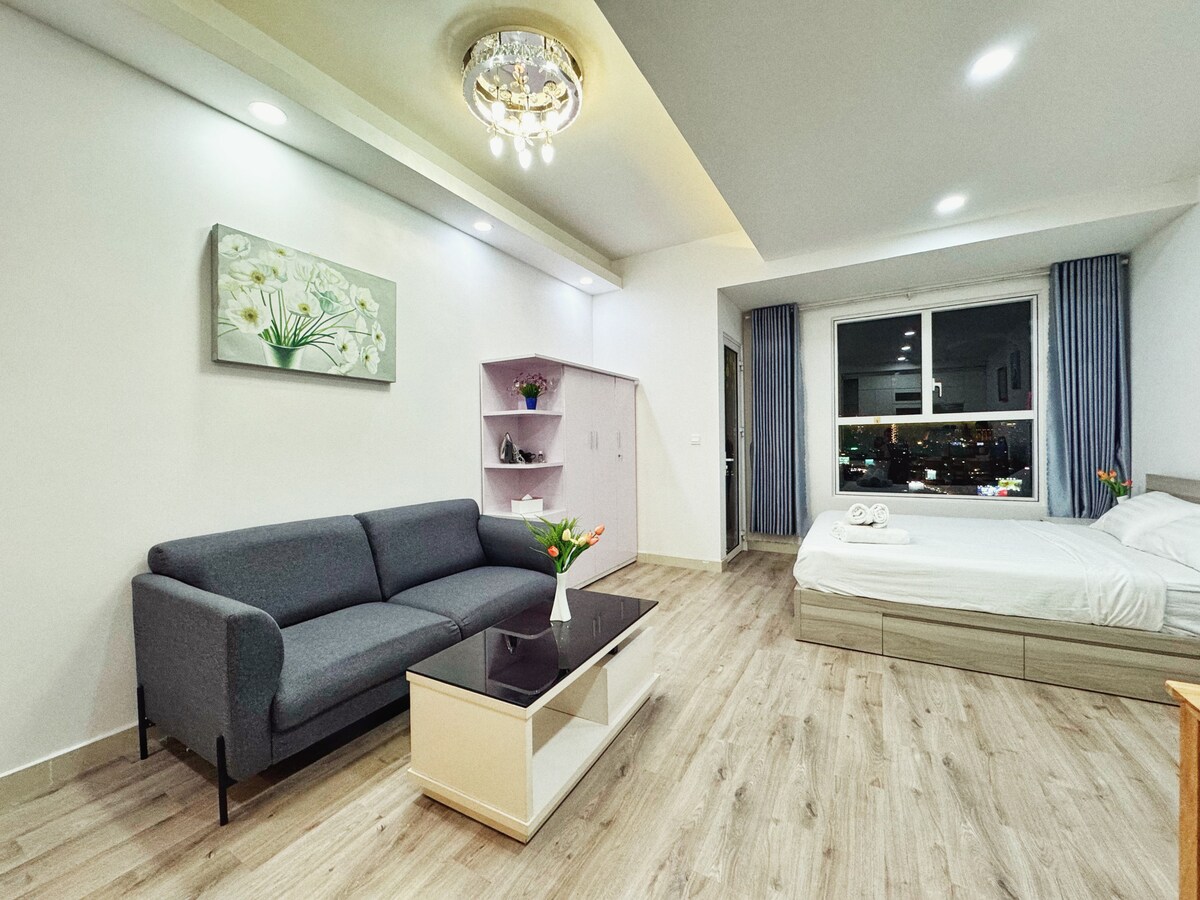 Brand New project which is located in District nearby with District 1 Studio kelas atas dan 100% baru dengan fasilitas lengkap termasuk: kolam renang infinity,sauna.,penatu, kamar mandi, wifi gratis, dapur, meja makan, ruang kerja bersama, ruang pesta,... ★Perkiraan waktu dengan taksi - 10 menit ke Katedral Notre Dame - 5 menit ke Pasar Ben Thanh - 5 menit ke gedung Bitexco - 15 menit ke gedung The Landmark 81