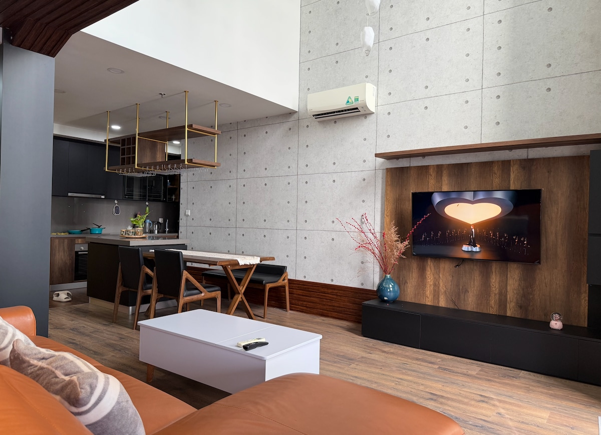 Homie Homestay is located near Tan Son Nhat international airport and shopping complex. Surrounding the homestay is the green space of the evergreen park. Here you can comfortably enjoy interesting outdoor activities such as cycling, jogging, badminton, etc. In addition, within the urban area there is also a swimming pool, BBQ area, and playground for children. The view from Homie Homestay helps you see the entire nearby canal, the bustling road and the city at night.