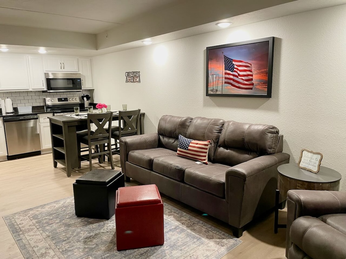 Kondominium 1 kamar tidur yang baru direnovasi secara damai, berlokasi di pusat kota, cocok untuk pasangan atau keluarga kecil. Liburan yang indah ini mencakup lantai baru, dapur, sofa tidur berukuran queen, kursi berbaring surgawi untuk bersantai sambil menonton TV layar besar. Nikmati tidur malam yang nyenyak di tempat tidur king size yang mewah. Terletak hanya beberapa menit dari Distrik Hiburan, pilihan bersantap dan berbelanja yang luar biasa, Danau Taneycomo Marina dan hiking, memancing, berperahu, dan berenang di Table Rock Lake.