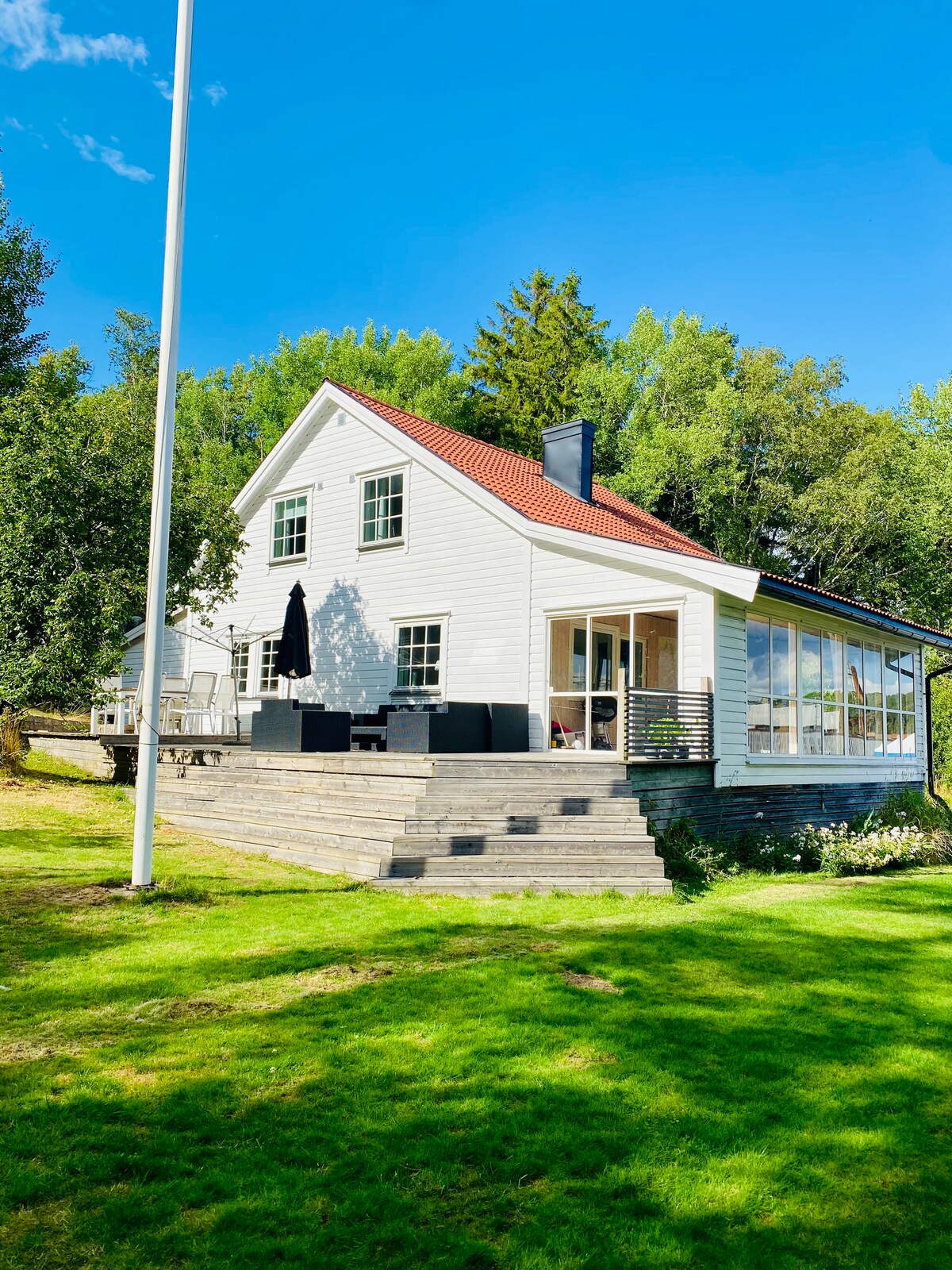NB! Selama liburan musim panas, hanya bisa disewa selama seminggu penuh. Oleh karena itu, hanya hari Minggu yang tersedia untuk pemesanan! Vila lengkap yang berlokasi di Grebbestad yang indah - tempat yang bagus untuk dua keluarga, tiga pasangan, atau sekelompok teman! TV 98 inci dengan Apple TV. Anda harus melakukan streaming dari langganan atau internet Anda sendiri. Mulai tahun 2026 akan ada apartemen terpisah di ekstensi di sebelah rumah terpisah. Ruang parkir pengguna ini dan area luar ruangan kecil di depan ekstensi.