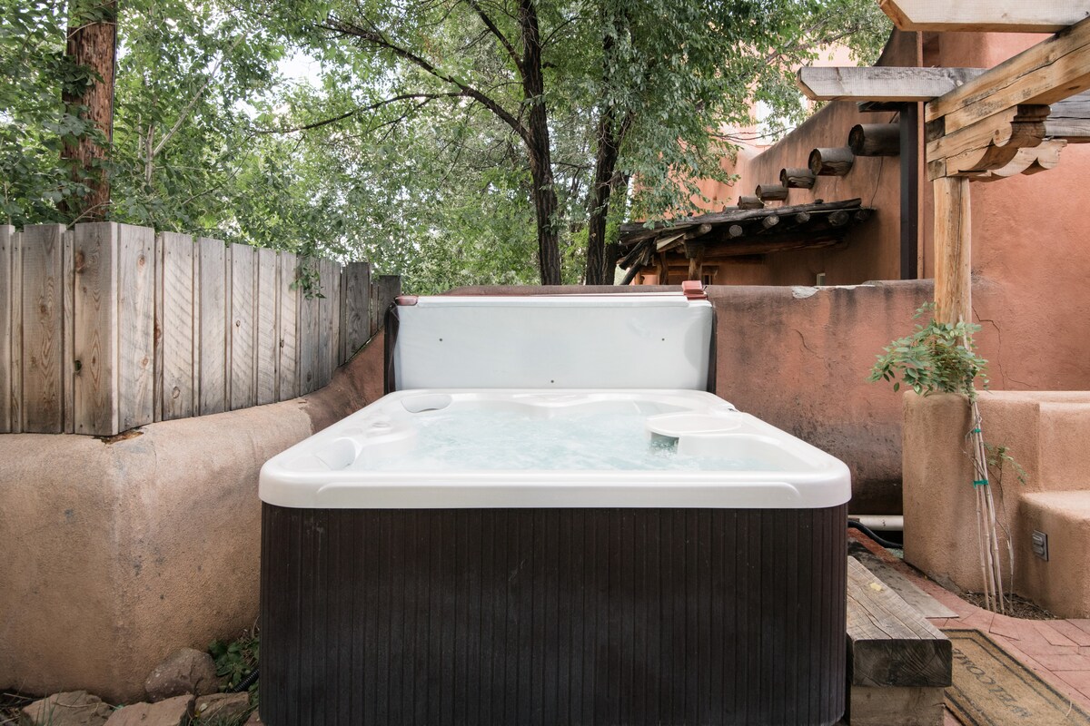 Izin Sewa Jangka Pendek Taos yang valid # STR2018 -00093. Selamat datang di Historic Mill House tak jauh dari Taos Plaza. Masuki properti bersejarah yang baru - baru ini direnovasi ini satu blok dari alun - alun melalui gerbang melengkung dan halaman indah dengan pepohonan yang teduh dan air mancur yang menggelembung dengan banyak tempat parkir gratis di lokasi - sangat sulit ditemukan di distrik bersejarah ini!