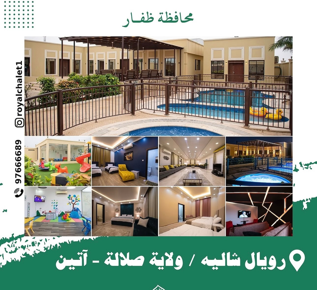 Chalet Grand, tempat kesenangan menginap di lokasi yang indah dan tenang dengan pemandangan jalan utama dan pegunungan hijau Salalah dan kursus modernnya dengan privasi tinggi, dan kamar tidur yang dirancang dengan cermat dengan pemandangan indah kolam renang hangat untuk orang dewasa dan Jacuzzi luar ruangan dengan air panas dan jangan lupa anak-anak, mereka memiliki kolam renang mereka sendiri serta banyak fasilitas indah lainnya yang memberikan tamu hari yang indah dan tak terlupakan