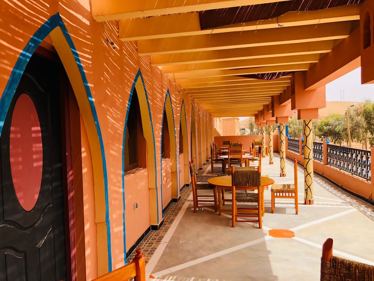 Welcome to Amnougar Center Guesthouse, a peaceful and meaningful place located 7 km from Ouarzazate, surrounded by nature and far from city noise. Founded in 1999, Amnougar Center is a vocational training and social care institution supporting people with disabilities and individuals in vulnerable situations. By staying with us, you are directly contributing to a social and solidarity-based tourism project. The Space Our guesthouse is simple, clean, traditional, and welcoming.