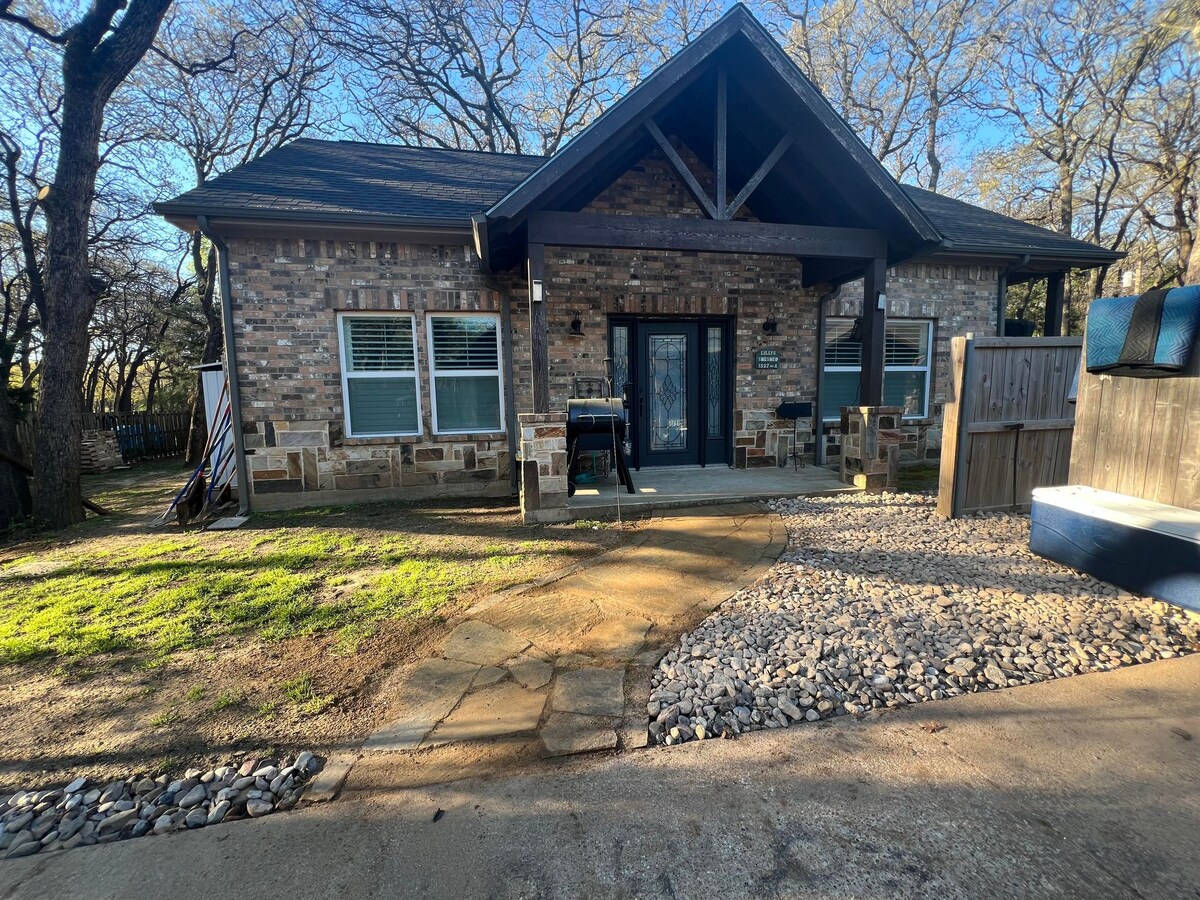 ** Prosedur kebersihan yang diperbarui untuk memenuhi/melampaui rekomendasi CDC ** Menetap untuk menginap di tempat persembunyian kami. Rumah tamu pribadi ini terletak di rumpun pohon ek tua, terletak di atas garasi terpisah kami. Kami merenovasi dari atas ke bawah dan bersantai di ruang luar ruangan kami yang luas. Rumah tamu yang tenang ini bisa menampung hingga 6 orang. Bagian terbaiknya? Kami berjarak 5 menit dari Downtown FtW dan berlokasi di Tarrant County. 20 menit untuk menuju ke mana saja, termasuk bandara DFW, stadion AT&T, dan TX Rangers.