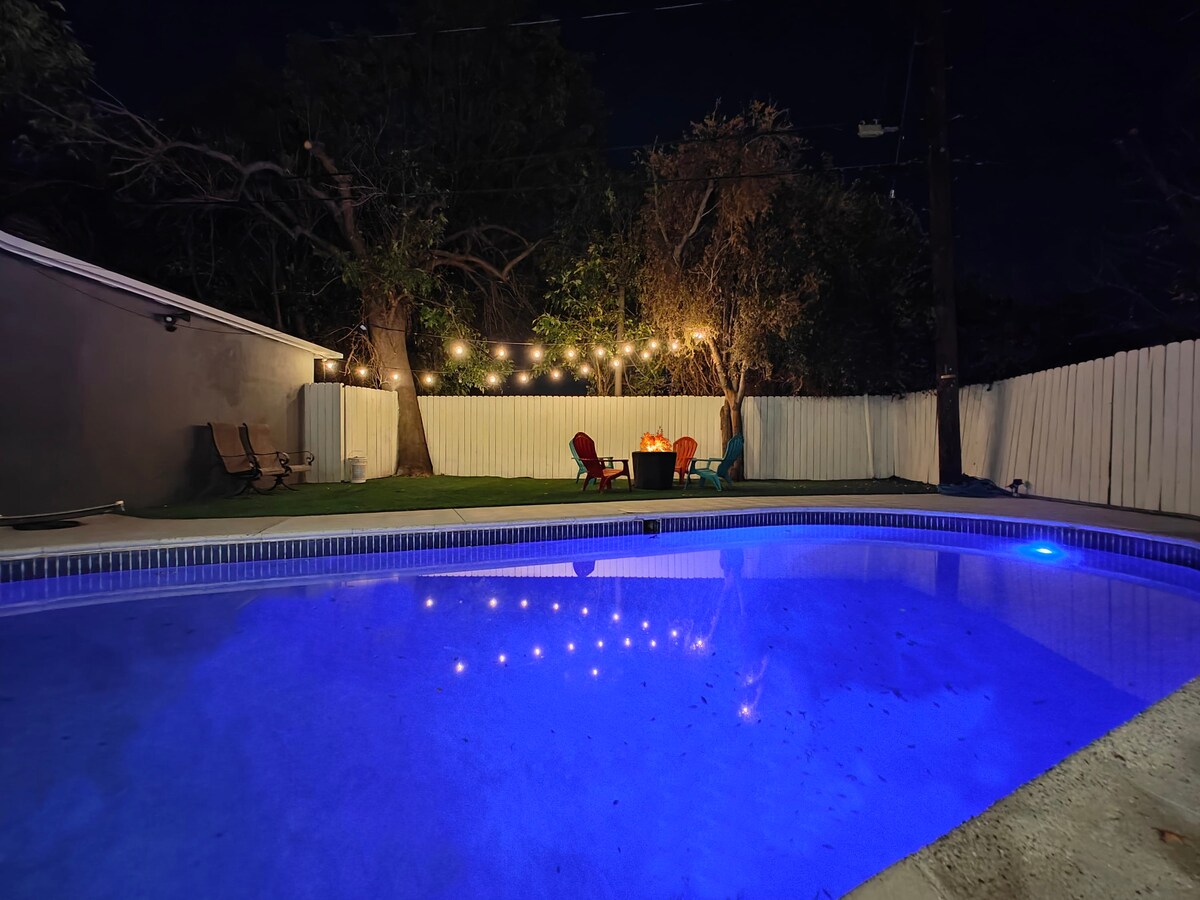 - Benar - benar Direnovasi & bersih cemerlang! - Desain kelas atas yang dilakukan secara profesional! - Kolam renang berpemanas (Addt'l $) - Tempat api unggun luar ruangan untuk menikmati malam! - Kasur ujung atas, tempat tidur/seprai, tirai blackout - Dapur lengkap, BBQ & Starbucks Coffee disediakan untuk memulai hari Anda! - TV di semua kamar - Tenang & Aman + Lokasi Pusat - Opsi bersantap di dekatnya + akses mudah ke Universal dan semua tempat wisata lainnya di kota - Tempat duduk yang nyaman di dalam & di luar - Permainan papan untuk hiburan - Wi - Fi berkobar