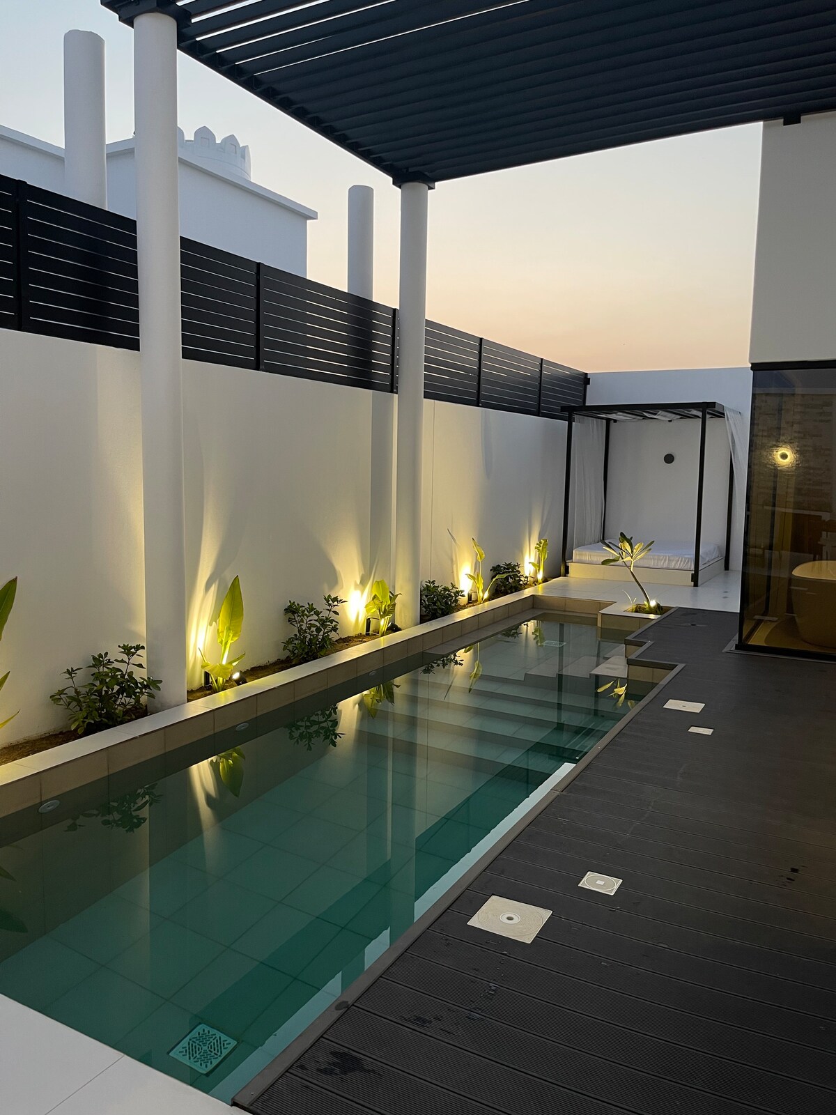 Nikmati masa inap mewah yang menggabungkan kenyamanan dan privasi di chalet khas ini. Tempat ini memiliki dua kamar yang elegan, lounge yang luas dengan desain modern, dan area duduk luar ruangan terpisah yang ideal untuk sesi malam yang tenang. Tempat ini dikelilingi taman yang indah dengan tempat duduk luar ruangan yang elegan dan kolam renang yang memberikan suasana relaksasi, dengan area barbeku yang didedikasikan untuk menghabiskan waktu yang paling menyenangkan bersama keluarga dan teman. Pengalaman yang sempurna untuk pecinta ketenangan dan privasi dalam suasana berkelas.