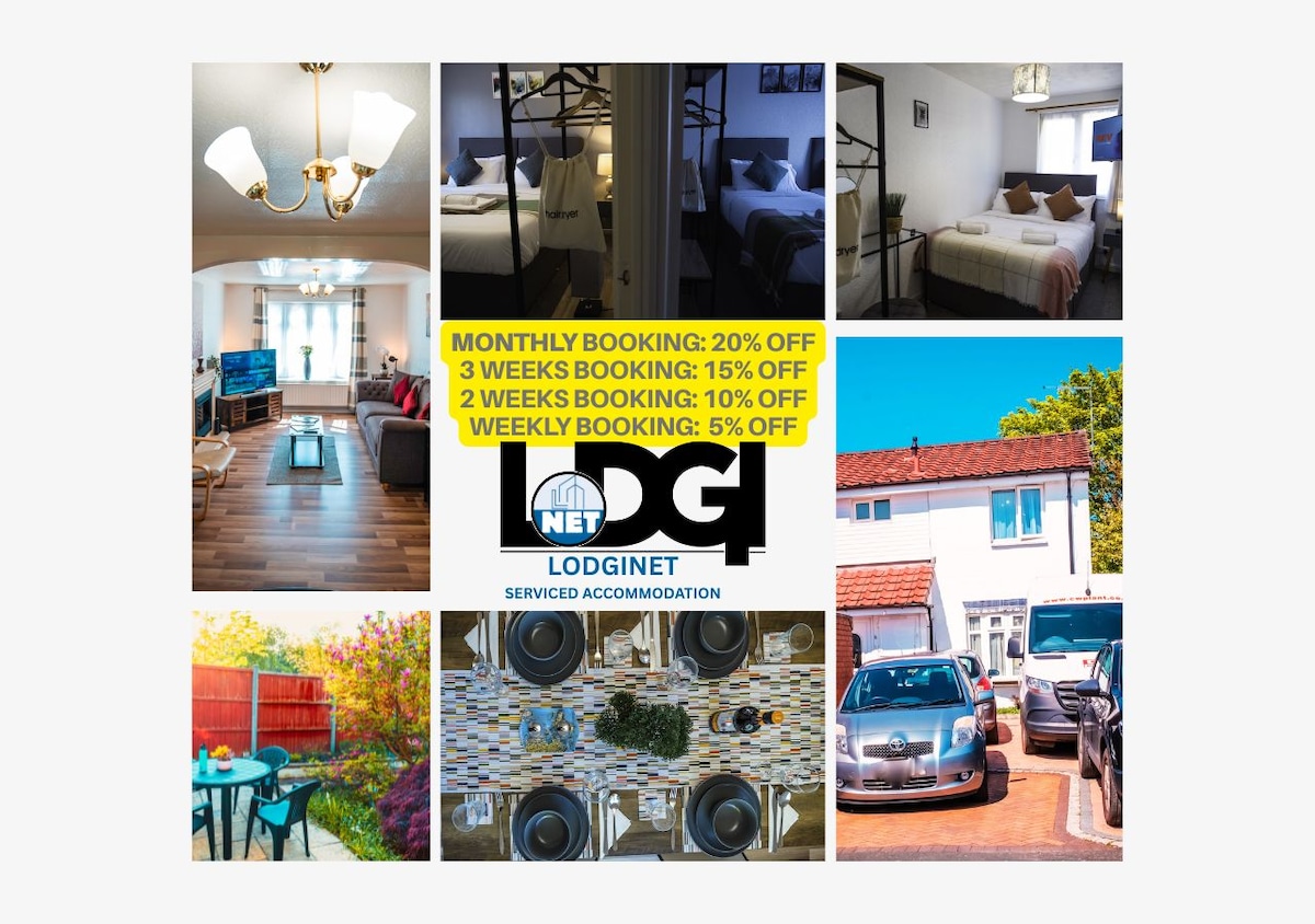 Airbnb yang nyaman yang menampilkan dapur lengkap bergaya, ruang tamu besar, tiga kamar tidur double, dan kamar tidur single keempat—semuanya dilengkapi dengan standar tinggi. Kamar tidur utama memiliki kamar mandi, ditambah ada kamar mandi keluarga dan toilet lantai bawah. Menawarkan dua tempat parkir gratis, taman depan yang rapi, dan taman belakang pribadi yang luas. Wi-Fi serat berkecepatan tinggi dan TV pintar OLED layar besar.