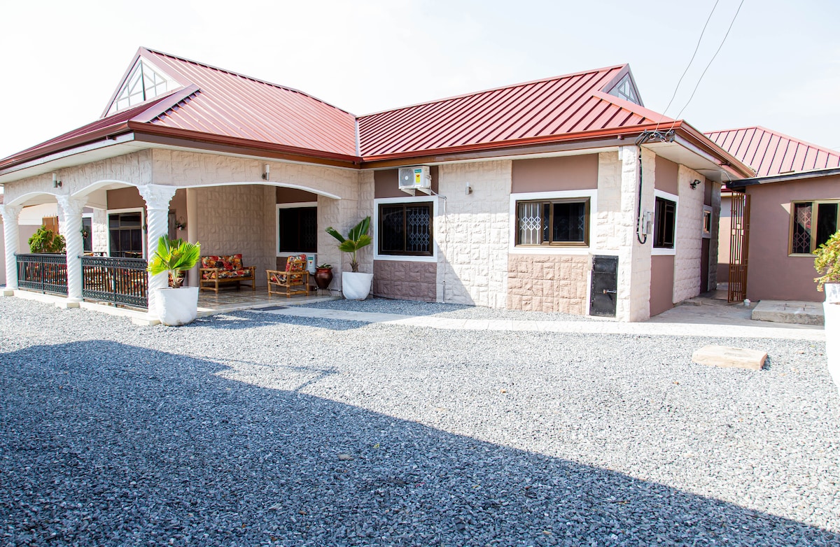 Selamat datang di rumah Anda yang jauh dari rumah di Tema Community 3 - Airbnb yang dirancang khusus untuk kenyamanan dan keamanan Anda. Terletak hanya 35 menit berkendara dari Bandara Internasional Kotoka, properti yang tenang ini menawarkan lingkungan yang aman dengan pengawasan CCTV dan manajer di lokasi. Sorotan: 3 Kamar Tidur dalam — Setiap kamar dilengkapi tempat tidur queen-size mewah Smart TV 75"di ruang tamu TV 40" di dua kamar tidur. Wi - Fi. A/C & Kipas Angin Gantung Dapur Berperabotan Lengkap Parkir Gratis.