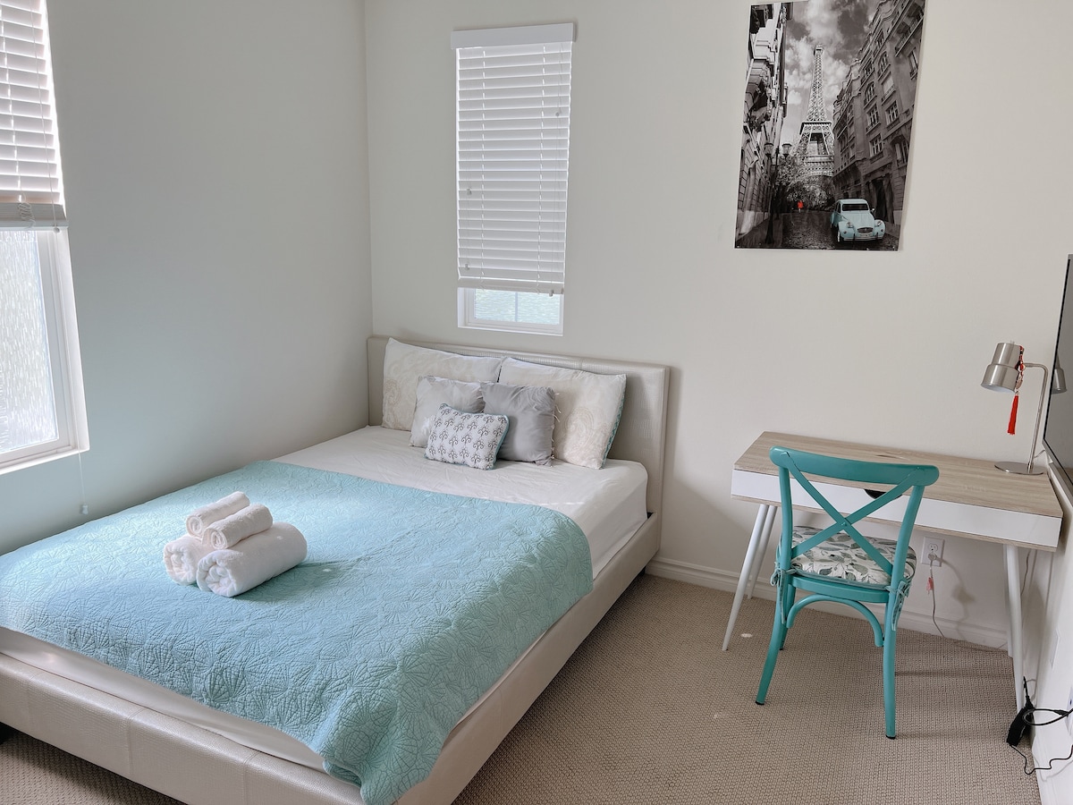 Ini adalah townhouse 2 lantai. Lantai pertama adalah garasi, ruang makan, ruang tamu, dapur, dan kamar mandi; lantai dua adalah 2 kamar tidur, masing - masing dengan kamar mandi. Kamar tidur utama memiliki teras besar untuk melihat dan menonton. Langit. Lantai kayu bermutu tinggi yang keras, desain apartemen yang bergaya, tempat tidur bermutu tinggi yang nyaman, Wi - Fi berkecepatan tinggi. Ada Costco、Target dan format lainnya di dekatnya, supermarket berada dalam jarak berjalan kaki, jalan - jalan komersial berada di dekatnya, dan restoran, bank, bar。