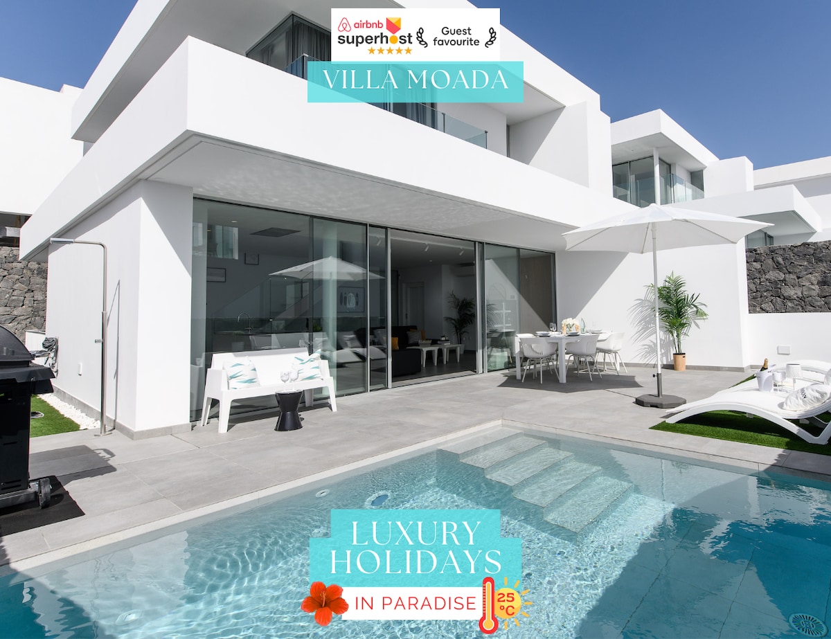 Kami menyajikan Villa Moada Ocean Breeze, vila desain avant - garde seluas 252 m2 yang dilengkapi dengan semua kenyamanan yang diperlukan untuk pengalaman yang unik dan mewah di Tenerife. Termasuk kolam renang pribadi berpemanas dan teras dengan pemandangan laut, lift, 3 kamar tidur dengan cahaya alami, AC dan Smart TV, 3 kamar mandi dengan shower, ruang tamu dan dapur lengkap. Di lantai dasar ruang permainan dan bioskop dan garasi untuk 2 mobil.