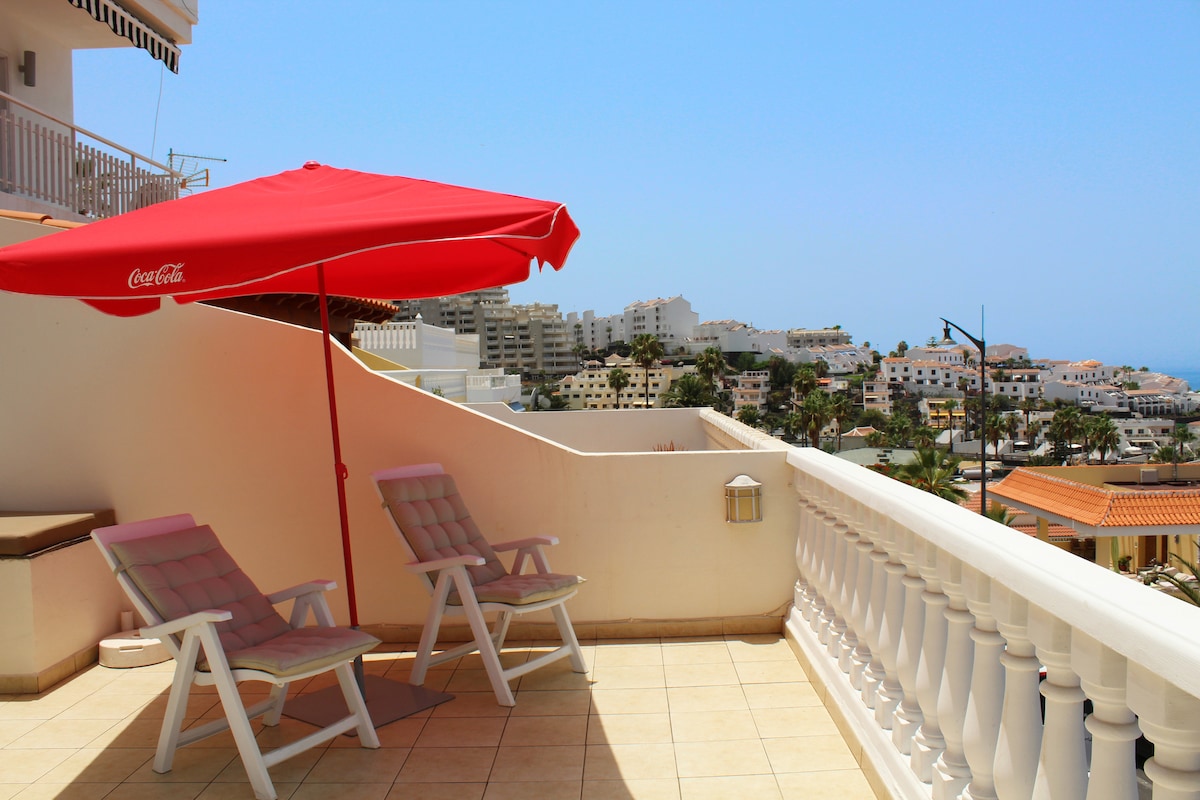 Apartemen yang indah di komplek mewah modern baru di Palm Mar. Tempat ini memiliki segala yang Anda butuhkan untuk masa inap yang nyaman: kamar tidur yang menawan dengan tempat tidur besar (1,80 m), 2 kamar mandi, dapur lengkap (termasuk mesin cuci piring, oven, pemanggang roti, mesin kopi, microwave, dll.), Wi-Fi berkecepatan tinggi, TV pintar. Satu tempat parkir juga tersedia. Ada AC di ruang tamu dan di kamar tidur, yang bekerja dengan sangat baik saat menyalakan secara bersamaan. Anda akan merasa nyaman di teras besar dan tenang yang menghadap ke selatan (24 m2) dengan sofa besar yang menikmati pemandangan indah dari cagar alam nasional dan laut dalam suasana pribadi dan romantis. Pemandangan matahari terbenam juga luar biasa di sini. Ruang tamu luas dan nyaman, sofa besar dengan banyak bantal dapat dengan mudah diubah menjadi tempat tidur ganda yang nyaman. Ada taman yang indah di halaman dalam kompleks dan jika Anda ingin Anda bisa mengunjungi pusat kebugaran, Anda juga bisa berenang di salah satu dari dua kolam renang yang dipanaskan atau hanya berjemur di bawah sinar matahari. Ada supermarket, restoran fruteria, dan Italia di seberang jalan dan sejumlah besar restoran, bar, kafe dalam jarak berjalan kaki dari kompleks. Sama - sama!