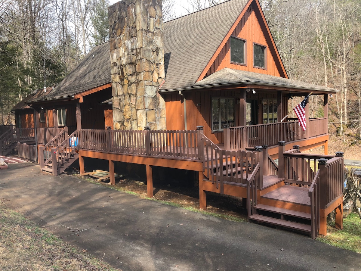 Kabin yang indah & menawan dikelilingi pepohonan dewasa, pemandangan mnt yang menakjubkan dan berbagai burung & satwa liar. Rumah ini menawarkan lantai & dinding kayu keras, langit-langit melengkung setinggi 30 kaki, jendela panel besar untuk memungkinkan cahaya alami berlimpah, perapian gas batu, balkon sisi atas dengan bak mandi air panas yang menghadap pemandangan mnt yang indah, dek belakang berukuran besar dengan banyak tempat duduk; kursi goyang, ayunan serambi, dan area makan. BB mencontohkan tidak kurang dari pesona kabin pegunungan murni & pesona pedesaan
