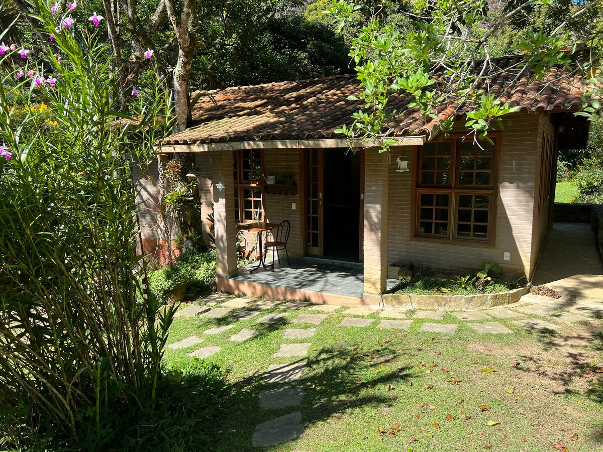 Bem-vindo ao nosso refúgio da serra, onde a natureza se funde com a comodidade. Nosso Airbnb oferece um cenário incrível , cercado por vegetação exuberante, com piscina , churrasqueira, um quintal espaçoso. A acomodação é uma casa de hóspedes independente, situada no mesmo terreno da casa principal. Os espaços são bem distribuídos e a área externa com jardim e piscina é totalmente privativa para os hóspedes, oferecendo bastante privacidade e sossego Somos totalmente pet friendy