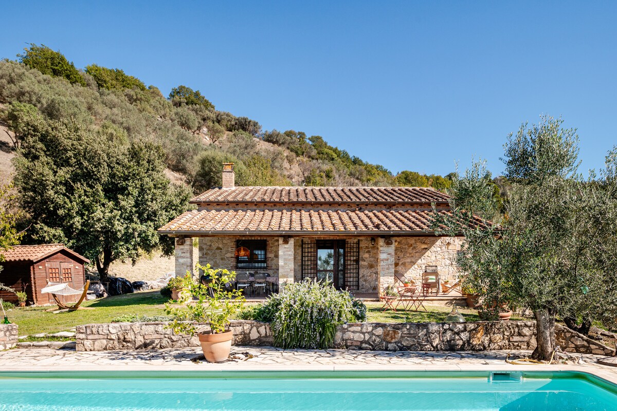 House with private pool for exclusive use among woods and hills, 8 km from Spoleto Relax in complete privacy in a detached house surrounded by nature, at 630 meters above sea level, in the small village of Borgiano. Here you will find peace, nature, and a private pool just for you, far from the crowds and perfect for recharging. Ideal for families, couples, or groups of friends looking for tranquility and exclusive spaces, close to the famous former Spoleto–Norcia railway path.