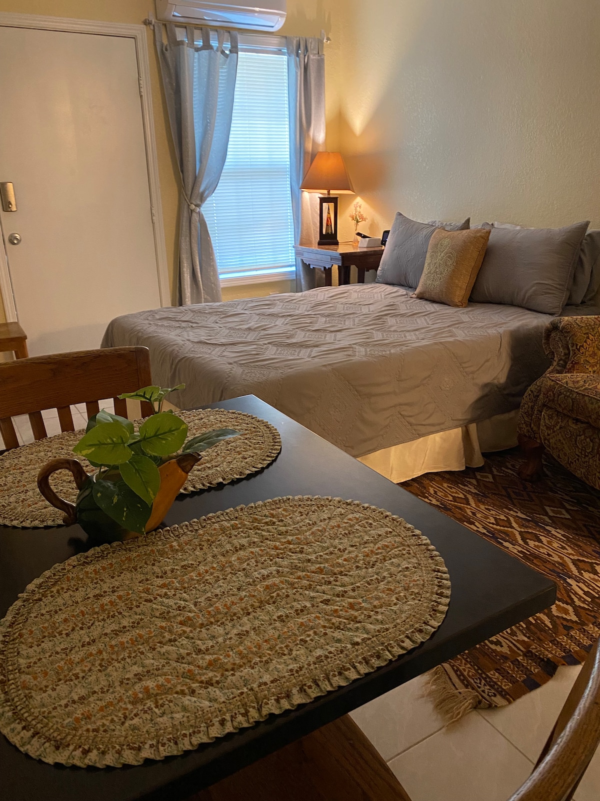 Halo, dan selamat datang di The Loft di Alamo ! Datanglah, bersantai, dan bersantailah di denah luas seluas 400+ kaki persegi dan berperabot lengkap ini. Tempat ini berlokasi di properti saya di atas garasi ganda. Tempat ini memiliki 1 tempat tidur king size, lemari, kamar mandi full size, dan dapur dengan wastafel, kompor 2 tungku, kulkas, dan pembuat kopi Keurig. Tempat ini juga memiliki Smart TV dan WiFi. DILARANG MEROKOK. Anda juga akan memiliki dek pribadi dan pintu masuk pribadi ke tangga yang mengarah ke loteng.