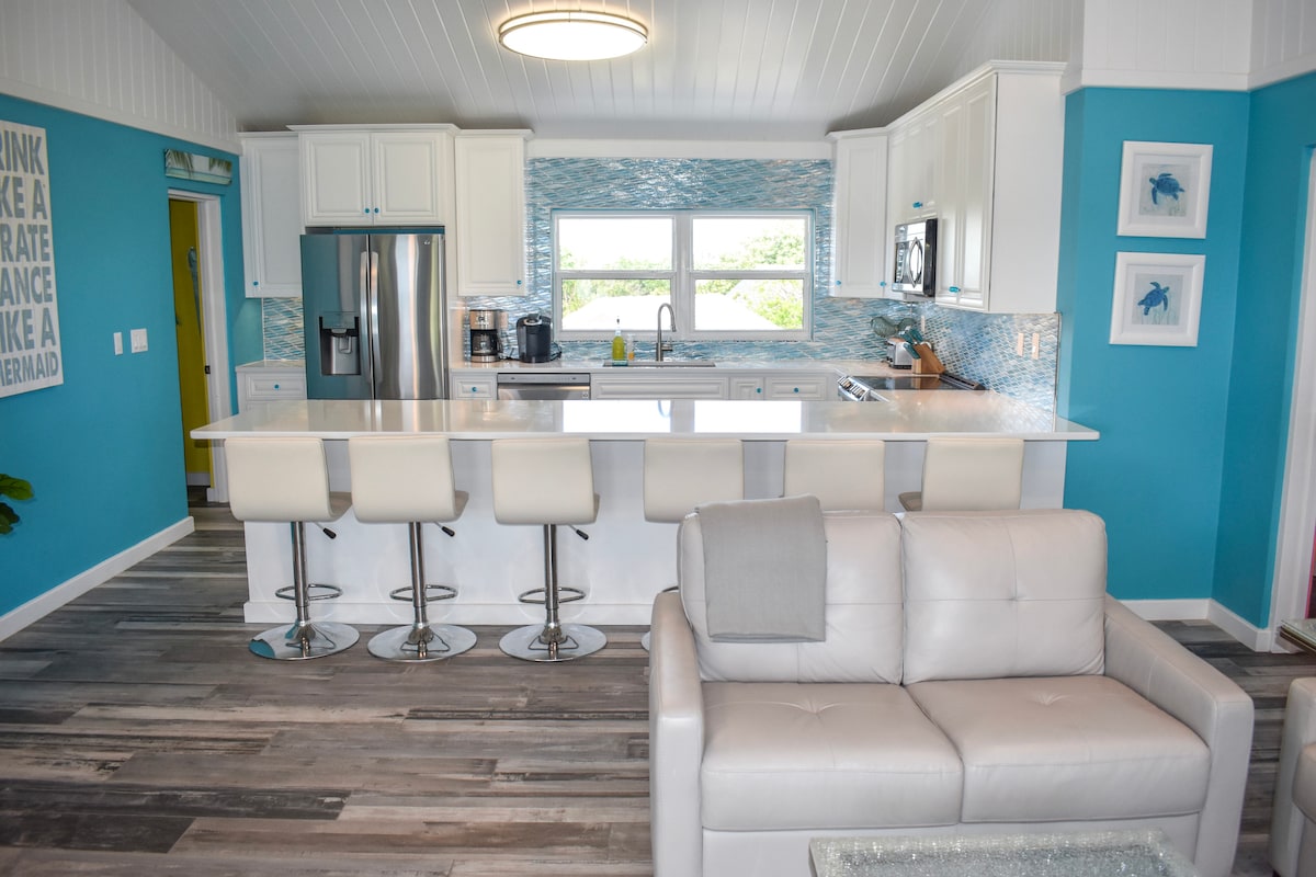 Pondok depan laut yang indah menghadap teluk terpencil di Old Banks Road di Governor's Harbour antara Pascal's dan Twin Cove Beach. Sangat cocok bagi siapa saja yang mencari liburan yang damai. Dapur baru dan kamar mandi marmer serta semua fasilitas modern - generator, AC, WIFI Starlink, TV pintar 4K, AppleTV, BBQ gas propana, dapur lengkap dengan peralatan baru termasuk mesin cuci piring, Alexa, dua dek baru yang menghadap ke laut dan gaya elegan. Teluk ini adalah surga snorkeler.