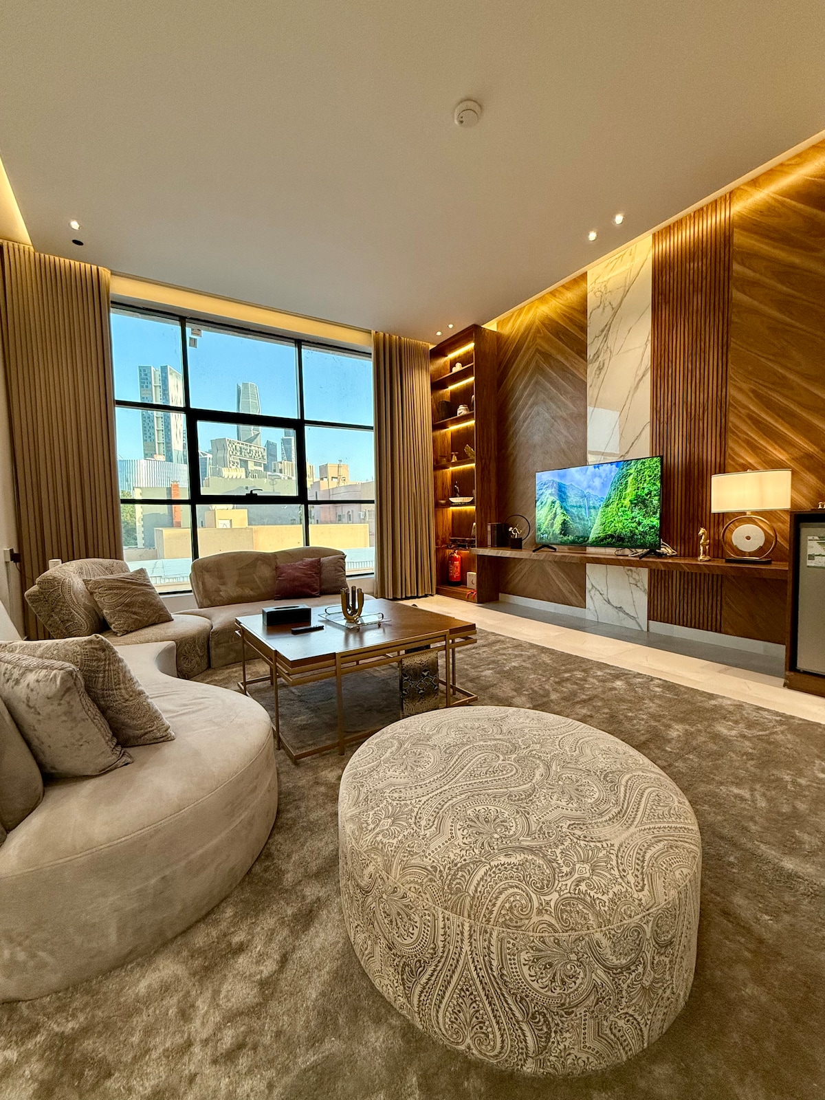 Selamat datang di apartemen kami yang menyediakan akomodasi luar biasa yang melampaui ekspektasi Anda. Apartemen ini memiliki kamar tidur yang dilengkapi dengan kasur terbaik serta ruang tamu terpisah dengan sofa yang nyaman dengan layar pintar 65 inci untuk dinikmati (Netflix, Shahid, BeIN) + Wi-Fi. Dapur dilengkapi dengan semua peralatan untuk memenuhi semua kebutuhan Anda. Tersedia area duduk luar dengan desain pedesaan dan pemandangan pusat keuangan yang unik, cocok untuk acara dan berkumpul bersama keluarga dan teman. Apartemen ini dilengkapi untuk masa inap jangka pendek dan jangka panjang. Lokasinya bagus di pusat kota dekat dengan tempat wisata, layanan, dan restoran.