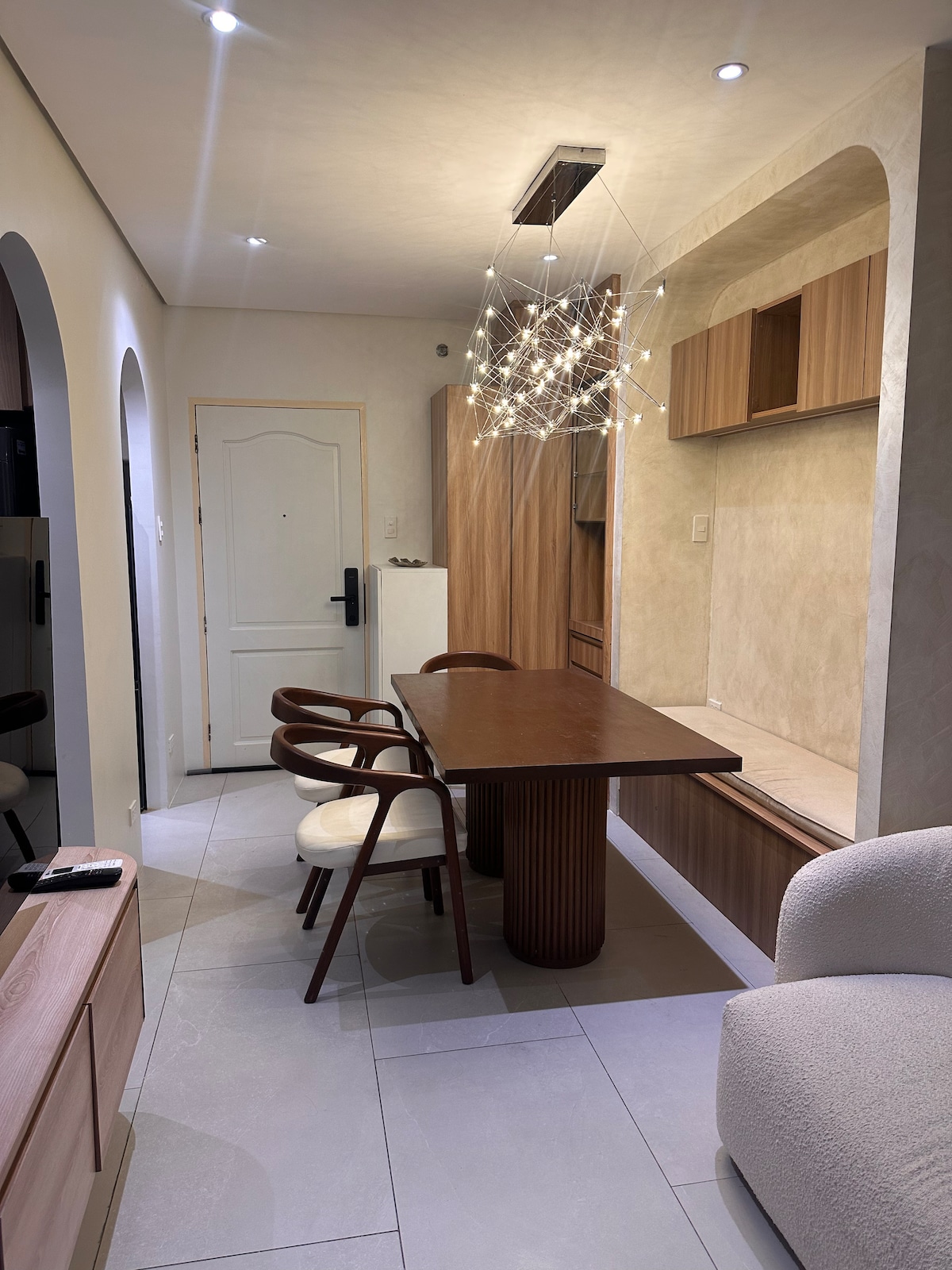 "Masuki tempat peristirahatan 1 kamar tidur bergaya yang terinspirasi boho di pusat BGC! Dirancang sempurna untuk kenyamanan dan relaksasi, apartemen nyaman ini menampilkan tekstur alami, dekorasi yang semarak, dan suasana yang menenangkan. Nikmati fasilitas modern, Wi - Fi berkecepatan tinggi, dan dapur lengkap. Terletak dalam jarak berjalan kaki dari restoran trendi, pusat perbelanjaan, dan kehidupan malam(shangrila,Dr wine,dll.) anda akan merasakan pengalaman terbaik BGC tepat di depan pintu Anda. Baik Anda datang untuk bekerja atau bersantai