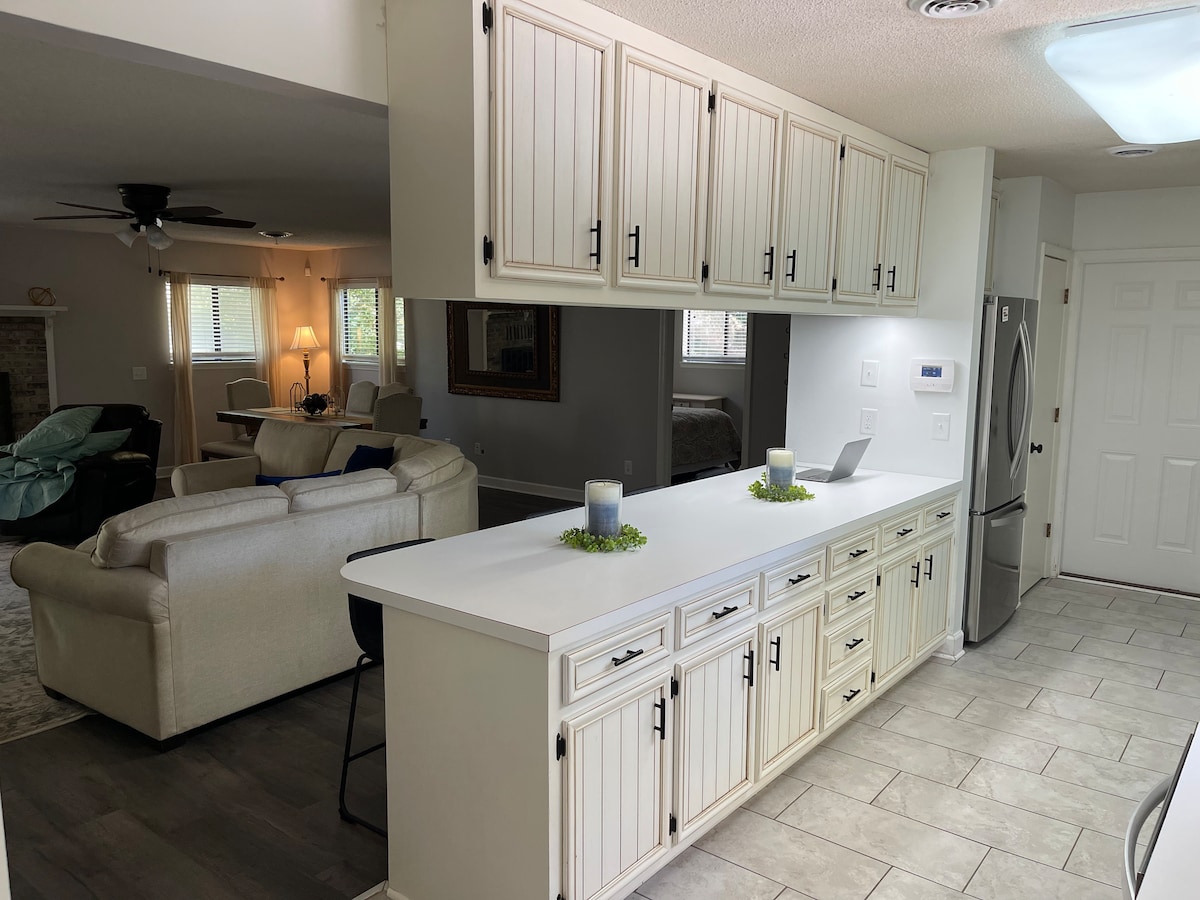 A classic coastal cottage with beautiful landscaping, framed by large Live Oaks and a small creek, located in Murrells Inlet Proper. This welcoming two-bedroom home is located about a mile south of the Murrells Inlet Marshwalk. The closest beach access is about 3 miles away, Huntington Beach State Park, which we provide a pass for. Garden City Beach Pier and public beach access, 4 miles away. Motorcycle & Dog Friendly, No Pet Fees!