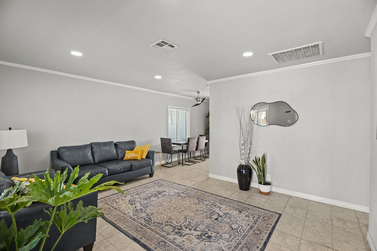 Rumah saya berlokasi di lokasi yang sangat sentris dengan halaman belakang dan depan yang bagus dengan dekorasi yang bagus di dalam dan di luar, kamar mandi yang sepenuhnya direnovasi pada tahun 2026, TV di kedua kamar tidur dan TV tambahan lainnya di ruang tamu dan memiliki semua yang diperlukan untuk masa inap yang damai, termasuk laundry. Jika Anda memutuskan untuk memesan tempat saya, Anda tidak perlu khawatir membeli air botol karena saya memiliki filter air alkali di properti ini.