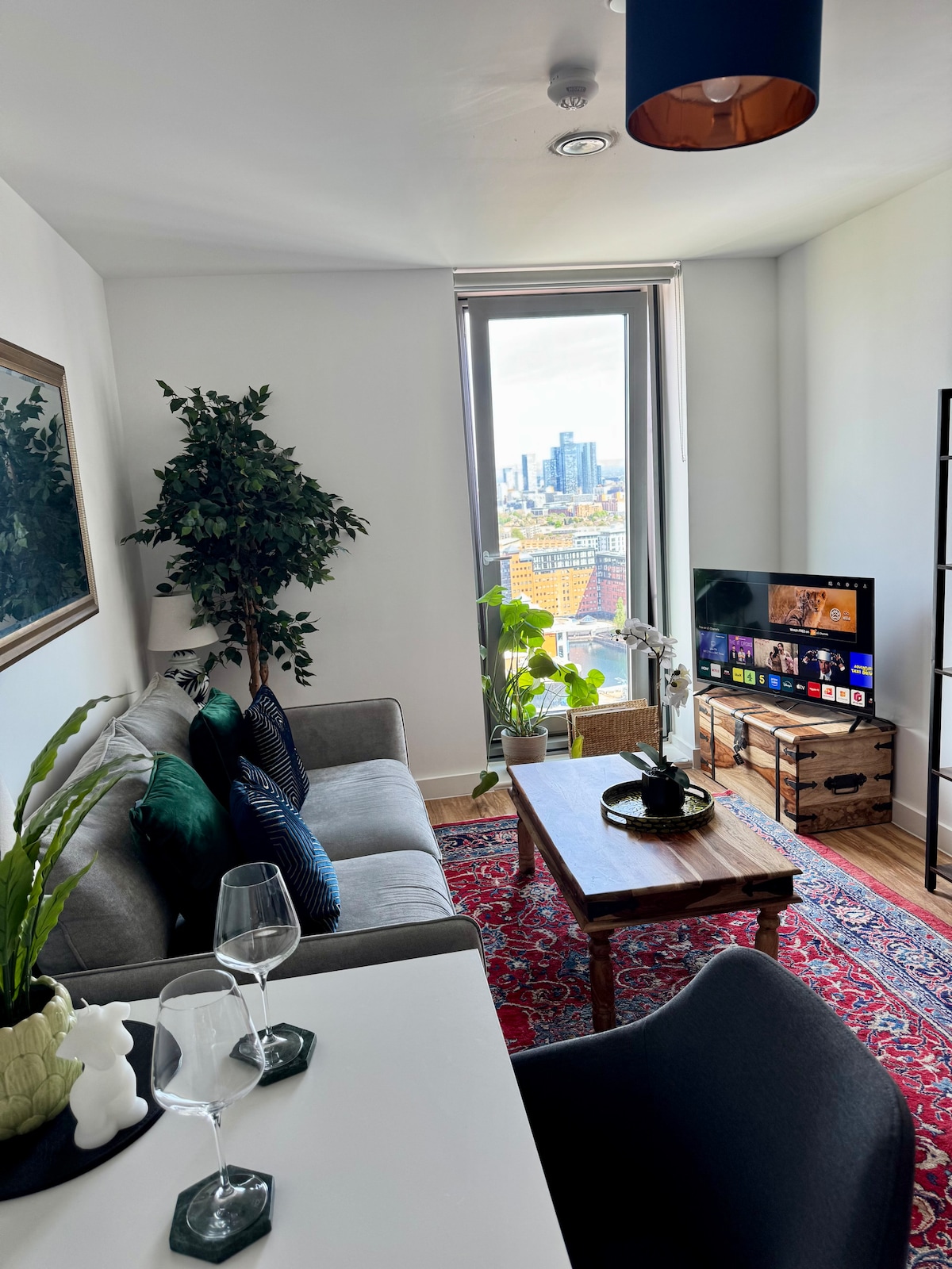 Selamat datang di City Nook, flat 1 tempat tidur bergaya kami di MediaCityUK Rumah yang baru dibangun dilengkapi dengan pemandangan menakjubkan yang bisa membuat Anda tersesat. Bersantai dengan kasur mewah dan Smart TV. Segarkan diri dengan kamar mandi yang ramping dan pancuran air bertekanan tinggi. Memasak di dapur dengan perlengkapan memadai. Lantai bawah memiliki pusat kebugaran, bioskop, ruang konferensi, dan teras. Beberapa saat dari toko, restoran, teater, dan stadion. Kami memiliki halte trem tepat di luar dan BBC/ITV hanya berjarak berjalan kaki. Sangat cocok untuk bisnis dan liburan.