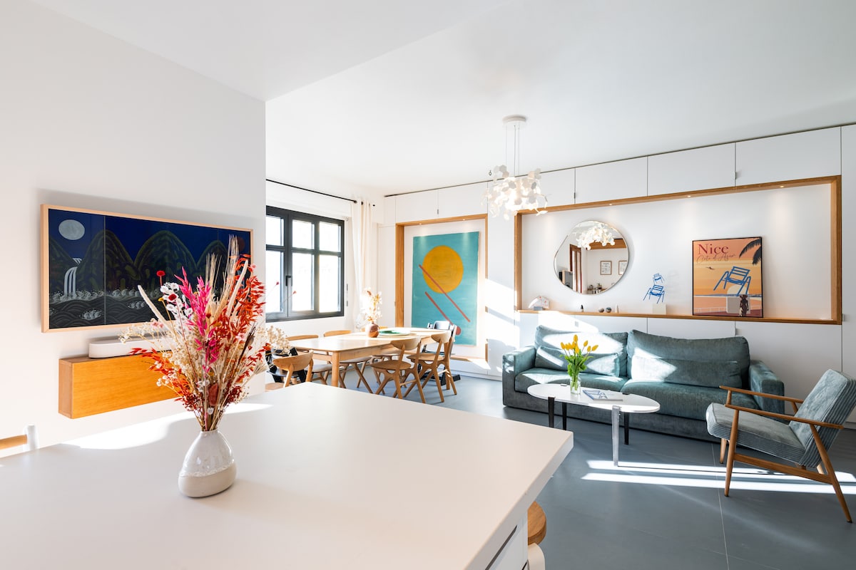 Terletak di lantai atas tanpa lift, apartemen ini menawarkan pemandangan menakjubkan menara gereja yang megah di Kota Tua dan perairan laut yang biru di bagian belakang, memungkinkan tamu untuk menikmati keindahan Nice. Di sini, Anda hanya berjarak 5 menit berjalan kaki dari pantai, memungkinkan Anda menikmati pantai Nice yang bermandikan sinar matahari dan Promenade des Anglais. Jelajahi jalan - jalan mempesona di Old Nice, temukan pemandangan kulinernya yang kaya, dan jatuh cinta dengan pesonanya yang unik dan romantis.