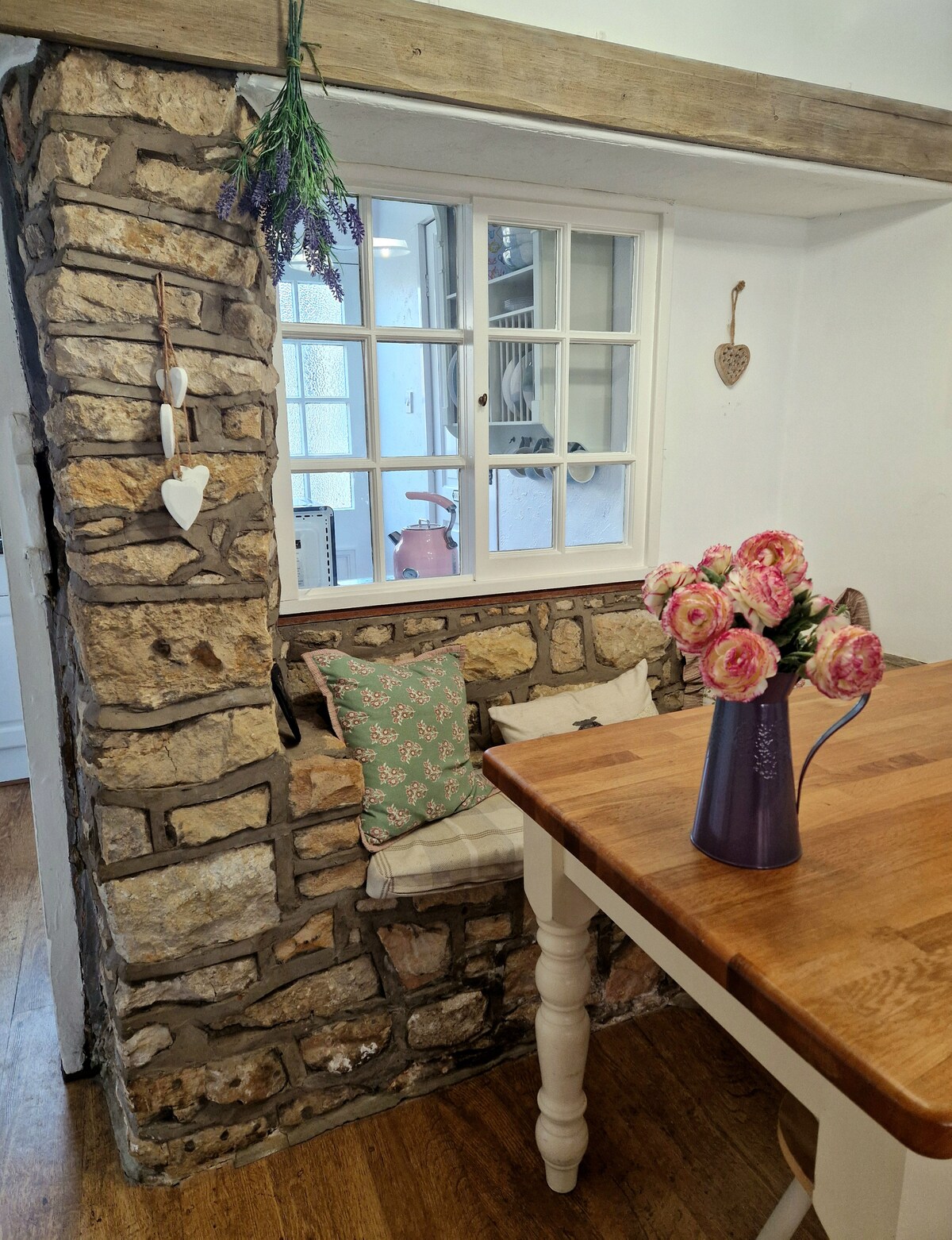 Akomodasi Kamar Tidur Utama, kamar mandi dalam dengan shower, 1 x Tempat Tidur King Size, TV Freeview Kamar Tidur Twin - 2 TV tempat tidur tunggal Tersedia tempat tidur bayi & kursi makan bayi Seprai & Handuk Kamar mandi - bak mandi, pancuran, wastafel, toilet Dapur - mesin cuci piring, penggoreng udara Ninja, mesin cuci, oven listrik & kompor, kulkas, microwave, peralatan memasak & setrika Ruang duduk yang nyaman 2 sofa kulit, Smart TV, pemanggang kayu listrik Pemanas Tengah Gas Wi - Fi gratis 1 tempat parkir mobil pengisi daya umum di dekatnya 1 x anjing kecil dikenakan biaya