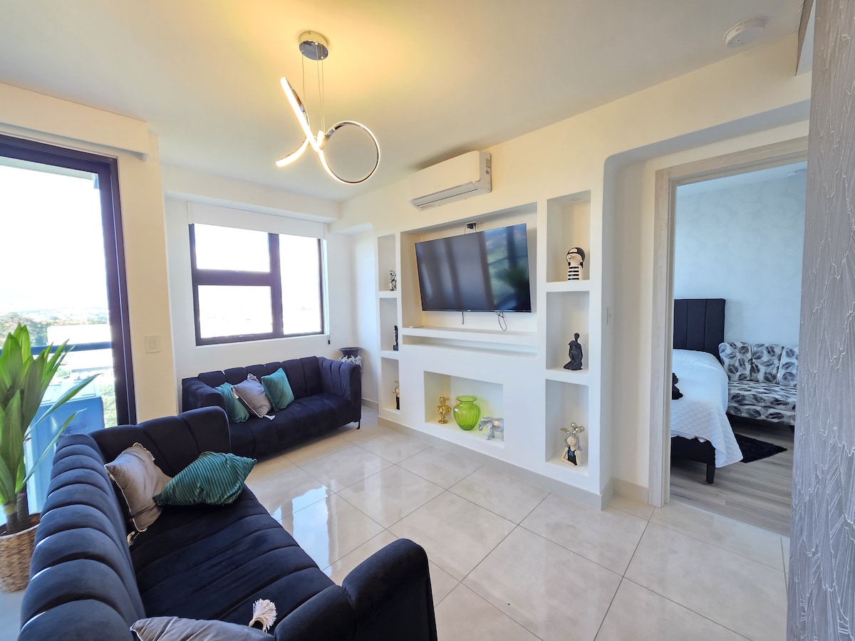 Welcome to our stunning retreat in Sabana, the heart of San José! Enjoy a breathtaking NATURE VIEW from our cozy apartment, just 20 minutes from the airport. There are 8 international RESTAURANTS IN THE BUILDING, including a coffee shop! This tranquil sanctuary offers convenience and serenity. Relax on the balcony, take a refreshing dip in the POOL, stay active at the GYM, work in the dedicated space, or stroll through the beautiful GARDENS. Enjoy the wonders of San José. Book now!