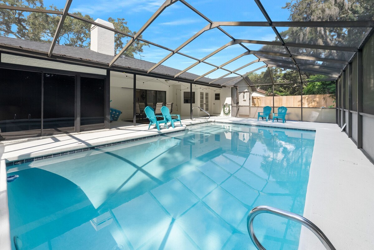 The Retreat sleeps 4 guest comfortably. Our 2 bedroom, 2 bathroom home features a pool with a waterfall and fenced backyard. This quaint paradise will make you feel relaxed sitting by the pool enjoying a good book with a drink while you can hear the breeze going through the palms in the backyard. It’s located on a quiet street. But minutes away from different beaches, golf courses, shops and restaurants, attractions and parks.Something to do for the whole family.