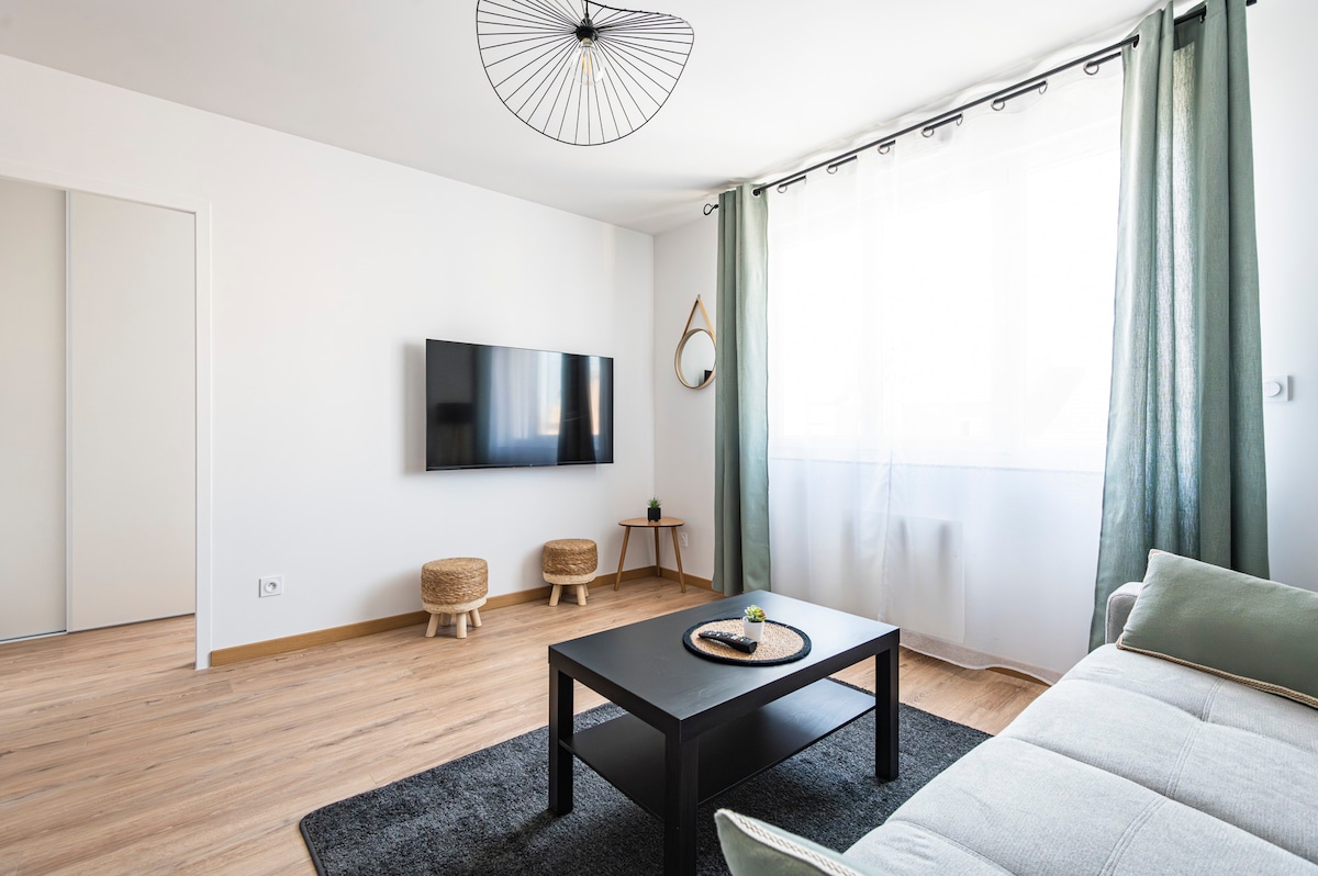 Selamat datang di apartemen dupleks kami yang modern dan nyaman. Direnovasi, lokasinya dekat dengan pusat kota Reims, ibukota Champagne. Sangat cocok untuk pasangan atau teman, tempat lengkap ini akan menawarkan semua kenyamanan yang Anda butuhkan untuk masa inap yang menyenangkan. Parkir di jalan gratis dan tidak terbatas. Dekat dengan semua fasilitas dan stasiun trem, lokasinya yang dekat memungkinkan Anda dengan mudah mengunjungi Reims dan tempat-tempat wisata.