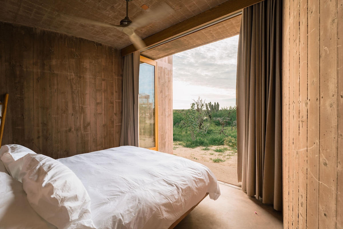 Selamat datang di Casa del Arco. Rumah mandi 3 br/3,5 kami yang sensitif terhadap lingkungan dan mewah dibangun pada tahun 2021 oleh tim desain / bangunan Baja Sur terkenal Ricardo Arteaga dan Sam Galina. Dengan memperhatikan kerajinan, rumah terasa menenangkan dan menyegarkan. Tempat ini terbenam di padang pasir, terletak di antara pegunungan Sierra Laguna dan garis pantai Pasifik yang lembut. Harap ketahui bahwa rumah ini saat ini dijual.
