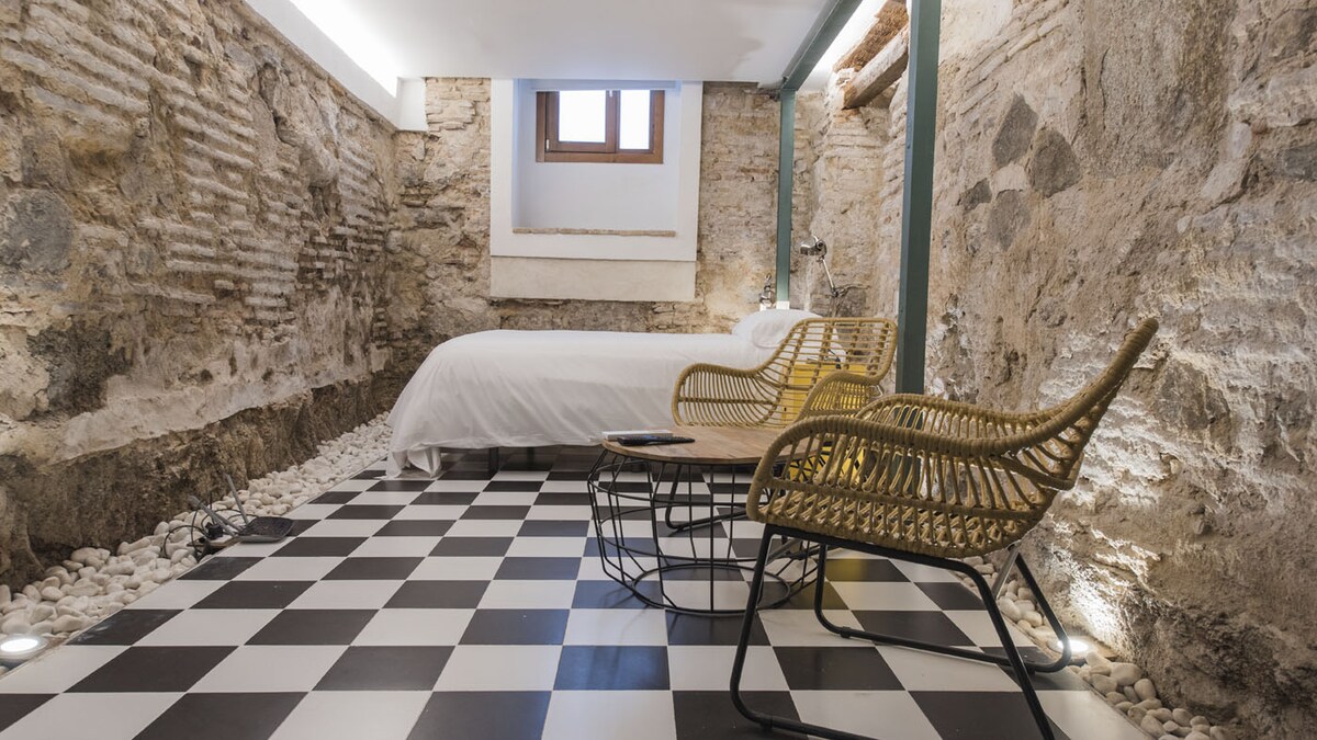 Apartemen Torre de la Catedral, termasuk sarapan. Di akomodasi ini Anda bisa merasakan ketenangan! Apartemen kami memiliki pemandangan yang luar biasa. Di mana kita bisa mendefinisikan tiga ruang, kamar tidur dengan tempat tidur double dan lantai loteng kedua dengan dua tempat tidur single; ruang tamu - dapur dan kamar mandi dengan bak mandi pusaran air. Mereka dirancang untuk keluarga atau pasangan. Kapasitas maksimal 4 pax.