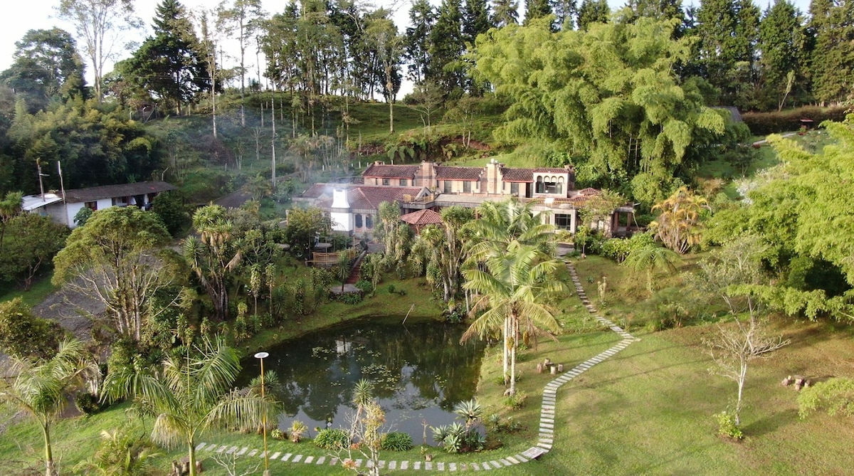 - Unique accommodation 15 minutes from the Salento park on foot. - Fully equipped kitchen. - Spacious living room with view to the mountains. - Cozy rooms with comfortable beds. - Wood-burning fireplace in the living room and main room. - High speed Wi-Fi. Possibility of expanding on demand. - 180 degree view from inside the house with wonderful sunsets. - Corridor of beautiful wax palms within the property.