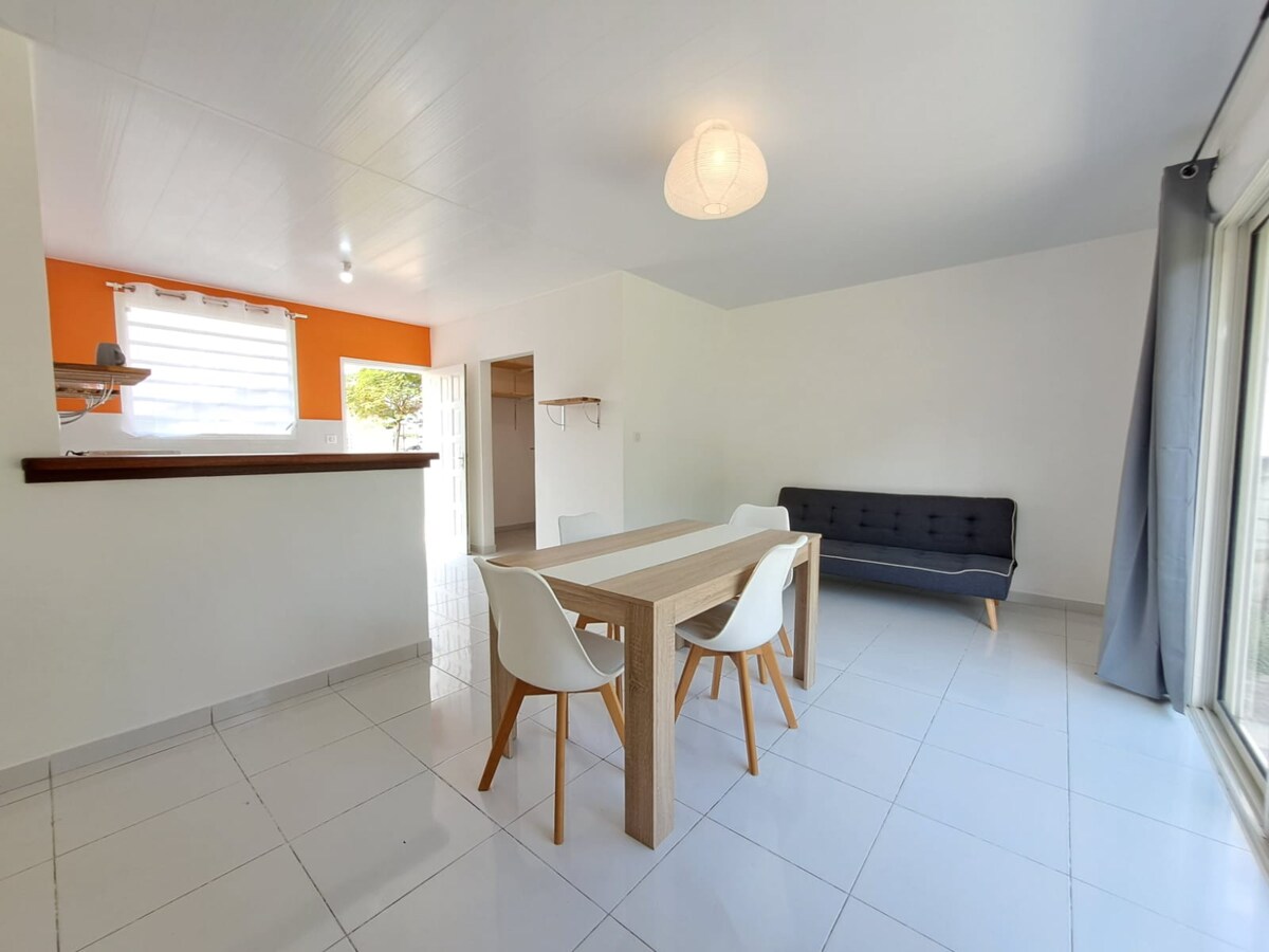 Ingin ketenangan dan kedamaian antara kota dan alam? Datang dan menginap di rumah 2 kamar tidur yang menyenangkan ini yang berlokasi di La Carapa, di tengah jalan antara Cayenne dan Kourou, di lingkungan yang tenang dan hijau. Rumah ini terdiri dari: 2 kamar tidur ber-AC, masing-masing dilengkapi kamar mandi pribadi Dapur lengkap terbuka ke ruang makan Teras luar ruangan besar. Seprai disediakan. WIFI Akses ke kolam renang bersama dan carbet (area sosial tertutup)
