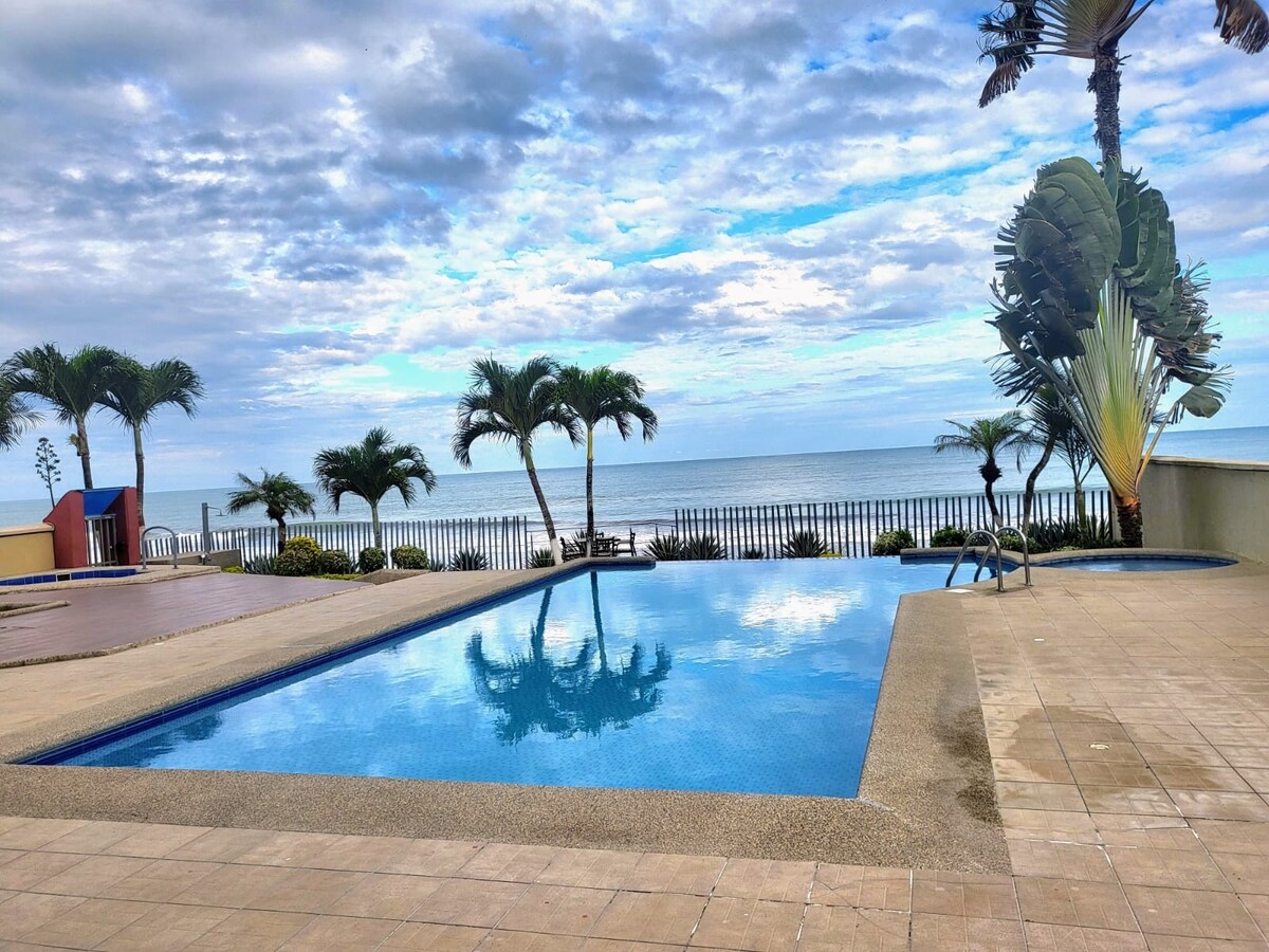 Lindo, amplio, comodo y confortable departamento ubicado en la ciudad de tonsupa, provincia de esmeraldas. El edificio donde esta el departamento se halla justo frente a la hermosa playa. El inmueble cuenta ademas con una vista linda(ya que posee terraza propia lo que hace que admires la belleza de la naturaleza que existe alrededor), cuenta con areas de: sala comedor y cocina, tres habitaciones (5 camas en total), dos baños (cada uno con ducha), hermosas areas sociales de: piscina y yacuzzi.