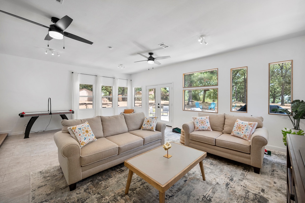 Menjauh dari segalanya dan temukan pesona kehidupan danau di pondok 2 kamar tidur dan 1 kamar mandi modern ini. Terletak di setengah hektar hanya beberapa langkah dari Cedar Creek Reservoir dan tidak jauh dari area DFW, sewa ini ideal untuk liburan pasangan, atau sebagai tempat peristirahatan keluarga. Nikmati kursi barisan depan ke alam sambil duduk di teras depan atau belakang, berjalan di sekitar lingkungan tepi danau yang indah, dan memancing, berenang, atau berperahu di danau.