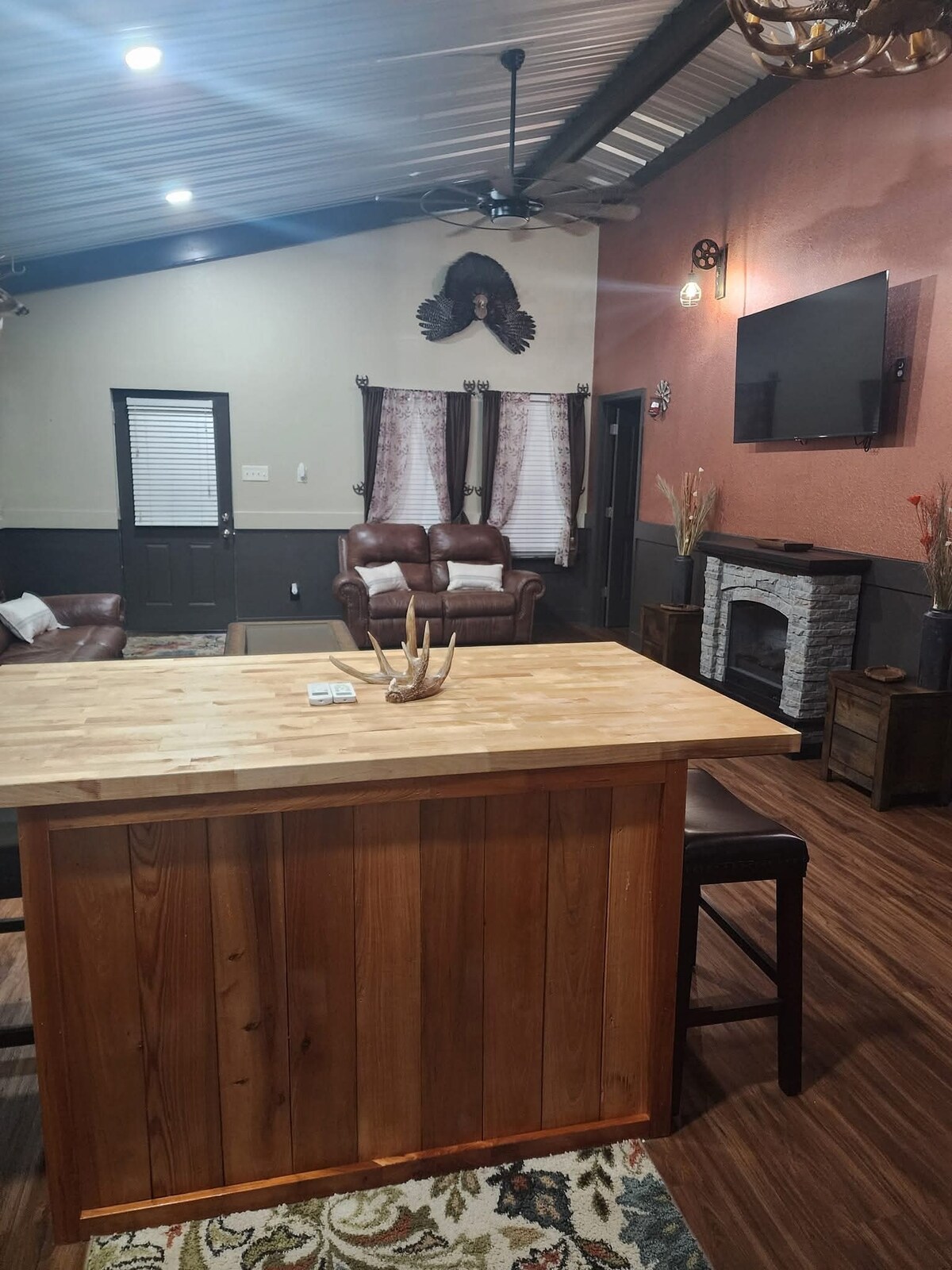 Take it easy at this unique and tranquil getaway. This beautiful property is just a small piece of Heaven located on a 100 acre tract of land privately own with pond view and fishing access. If you are looking to get away from the hustle and bustle of city living this place is perfect. Just relaxing outside enjoying the air and fire pit or fishing by the pondside, we have you covered.