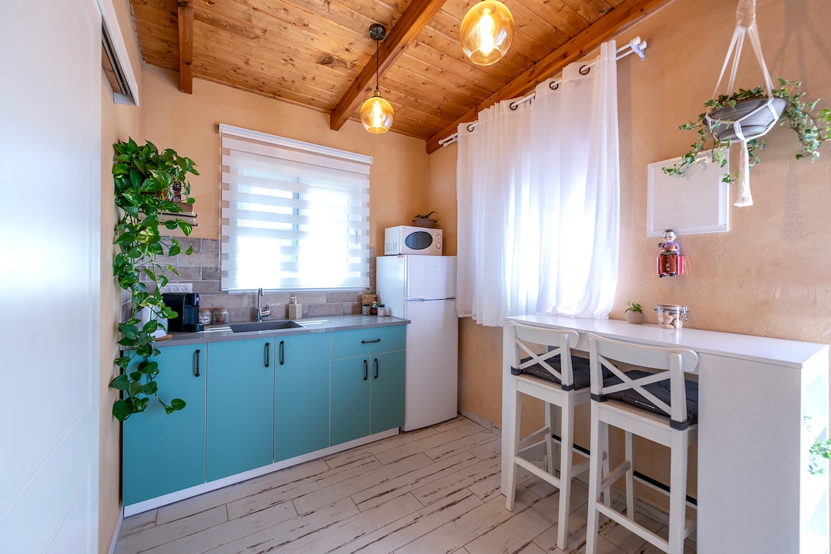 Selamat datang di kabin dengan pemandangan bukit – di kompleks balok butik di alam! Kabin kami berlokasi di utara hijau di depan pemandangan pegunungan Golan yang menakjubkan dan ladang pertanian terbuka. Ini adalah tempat sempurna untuk menghentikan waktu, terhubung dengan keheningan, dan merasakan keajaiban alam. Kebun di sekitar kabin mengundang Anda untuk benar-benar bersiap-siap – dengan tempat tidur gantung yang menenangkan di antara pepohonan, halaman, area duduk yang teduh, dan lubang api ajaib untuk malam yang tenang dengan secangkir teh atau marshmallow di atas api. Dan yang paling menyenangkan? Hanya 5 menit berjalan kaki ke aliran sungai Banias yang menakjubkan!