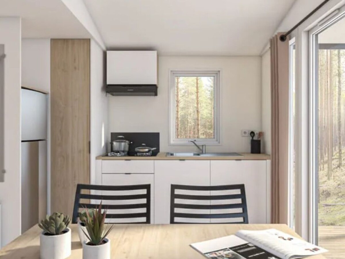 Mobile Home rental of 32 m² aired with a terrace of 32 m² on 220 m² land in Hyères at Camping les Pins Maritimes 200m from the beach Mobile Home terdiri dari ruang tamu dengan sofa sudut, TV layar datar, pemutar DVD, meja dan 4 kursi, dapur lengkap (kulkas freezer besar, microwave, oven, pemanggang roti, pembuat kopi, ketel), kamar mandi, toilet terpisah, kamar tidur dengan 140 tempat tidur dan kamar tidur kedua dengan 2 tempat tidur di 80.