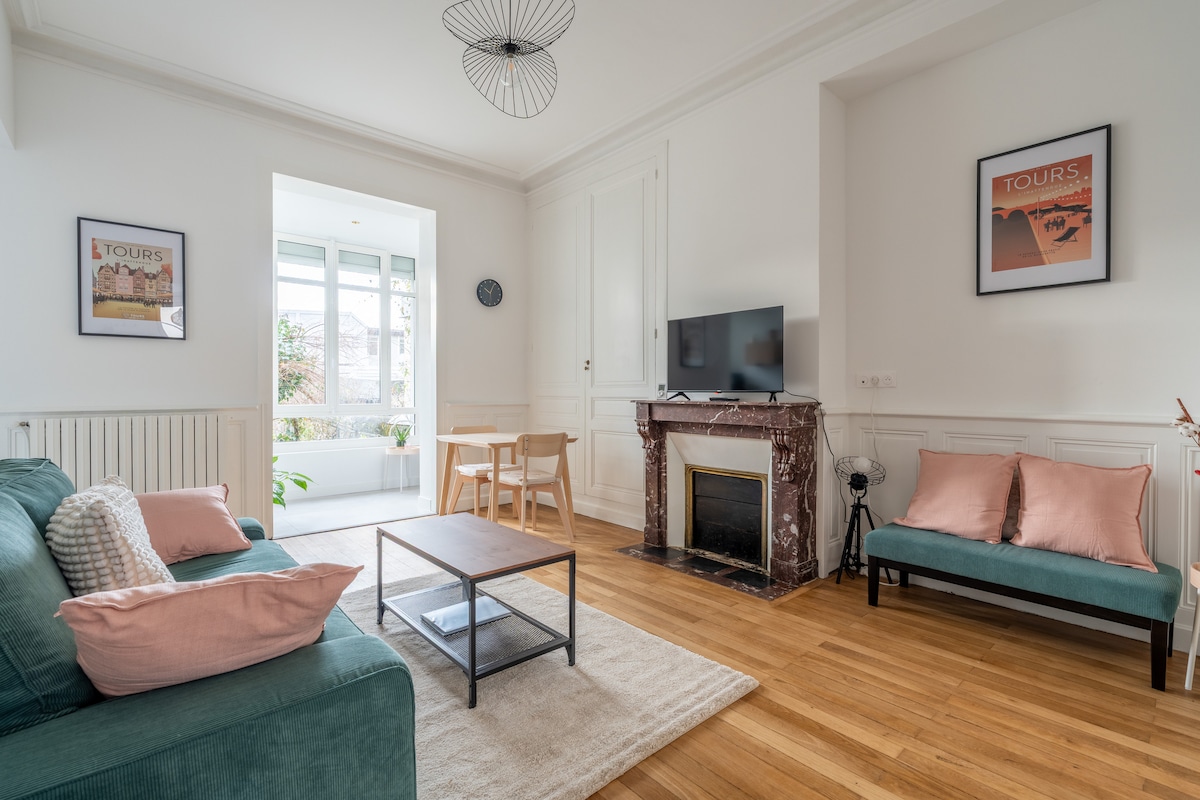 Selamat datang di T2 (60m2) kami yang luas di lantai 1 gedung yang damai di pusat Tur! Berlokasi ideal di jantung pusat bersejarah, akomodasi kami, lengkap dan diperbaharui, menawarkan pengalaman unik. - Mesin Wi - Fi /Nespresso/mesin cuci/mesin cuci piring - Seprai kamar mandi & tempat tidur disediakan - Ruang kerja - Place Plumereau (1 menit berjalan kaki), Rue Nationale (3 menit berjalan kaki), Stasiun Kereta Api (15 menit berjalan kaki) - 100% check - in dan check - out mandiri Yang perlu Anda lakukan hanyalah meletakkan tas Anda!