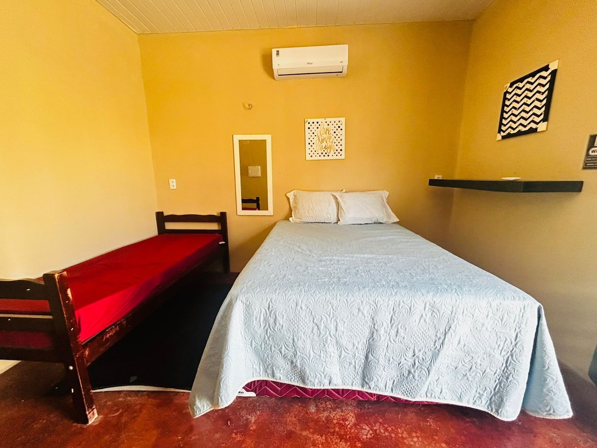 Bawa seluruh keluarga ke tempat luar biasa ini dengan banyak ruang untuk bersenang - senang. Rumah berperabot lengkap, dengan TV kabel dan Wi-Fi 3 kamar tidur, 2 dengan suite ber-AC, masing-masing kamar tidur dengan tempat tidur double dan dua tempat tidur single, dan 1 dengan suite ber-AC, dengan tempat tidur double, di bagian rumah lainnya, ada ruang untuk menyiapkan 10 tempat tidur gantung!! Batas 10 orang Rumah menghadap laut, dengan pemandian laut terbaik, di depan tempat kolam alami terbentuk!! Dan 600 meter dari pusat kota