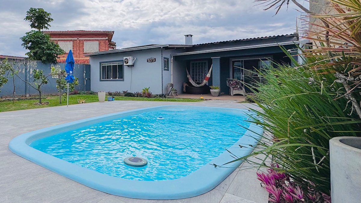 Rumah di pusat kota Tramandaí dengan kolam renang dan tempat rekreasi