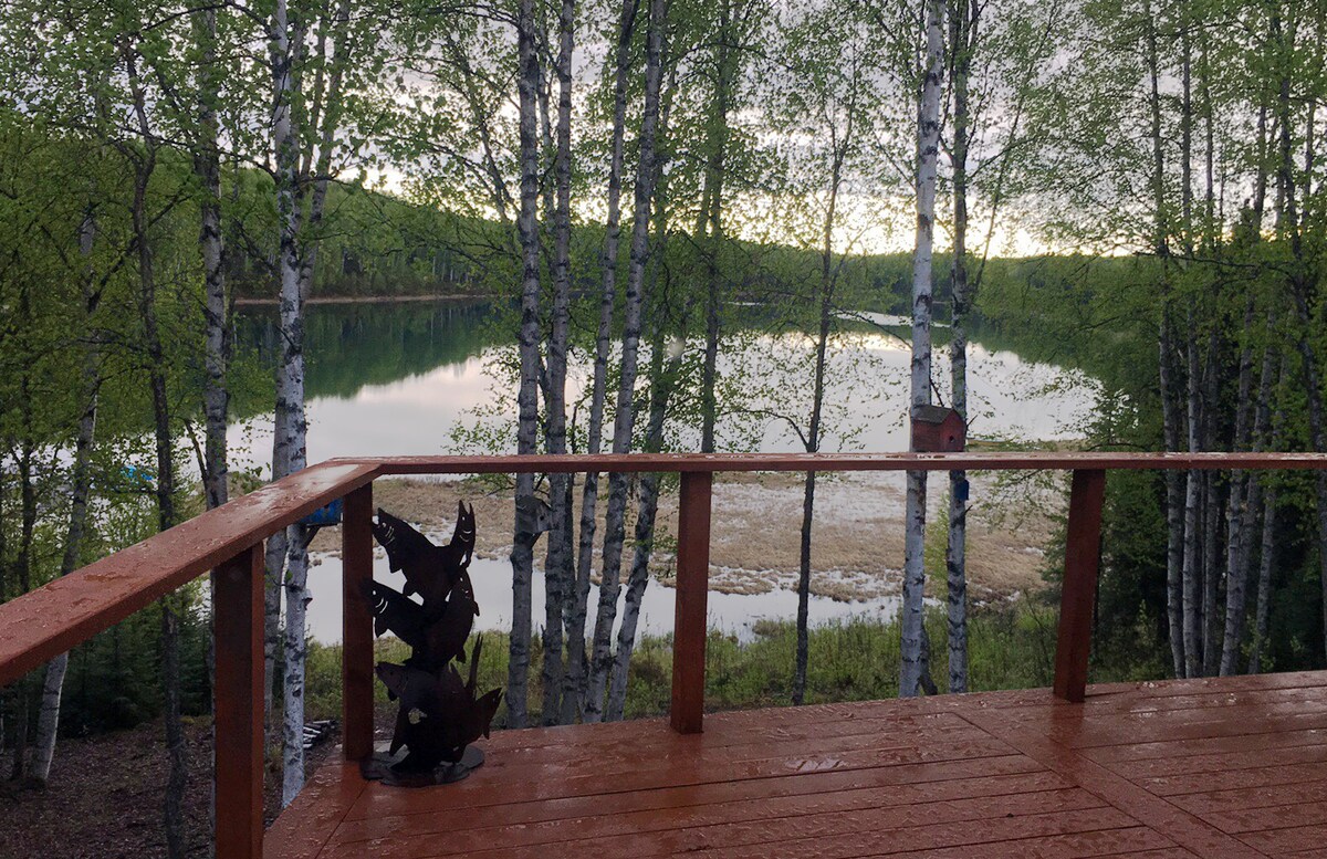 Enjoy a fire overlooking the lake on the deck, or rest by the wood stove in the living room. A perfect location for enjoying Talkeetna just 10 minutes away. Dogs are welcomed. The comfortable lakefront home overlooks Sunshine Lake with an expansive deck. There is private lake access, a rowboat, and 4 kayaks for your use. You are just one block from the Spur Road and bike path, and ten minutes from downtown Talkeetna.