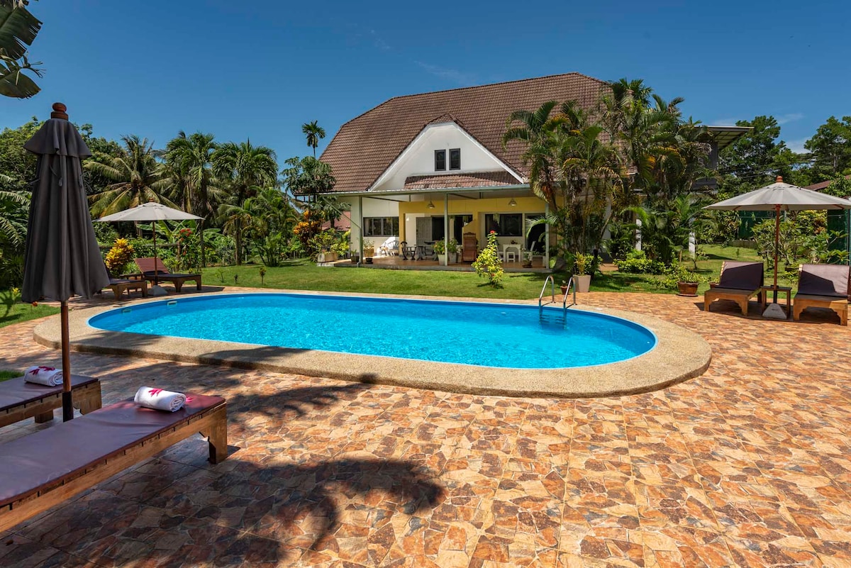 Selamat datang di Gedung Putih/Baan Naifhan - rumah tamu pribadi kami di tengah taman tropis. Rumah kami baru - baru ini direnovasi dan memiliki informasi terkini mengenai dapur, listrik, AC, dan pasokan air. Pantai - pantai terindah hanya berjarak 1 -2 km namun tentu saja Anda juga bisa menggunakan kolam renang baru kami dan bersantai di bawah naungan pohon palem.
