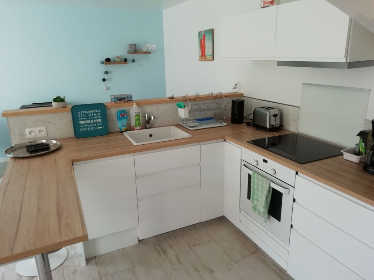 Studio ini direnovasi sepenuhnya pada tahun 2018, oleh seorang desainer interior. Menghadap pantai Saint - Jean, tempat ini dirancang sebagai lokasi di tepi laut, dengan kayu dan bahan papan atas. Studio serupa lainnya, di lantai dasar, tersedia untuk disewakan bagi orang - orang yang ingin datang dengan pasangan lain. Dua studio berada satu di atas yang lain.