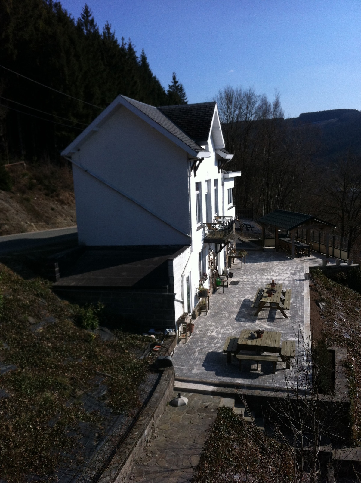 Rumah di pedesaan terdiri dari 2 rumah utama dengan pintu masuk terpisah, kapasitas 6 orang di satu sisi dan 7 orang di sisi lain (lihat pengumuman Antara Langit dan Ster 2)atau dapat ditempati secara penuh (maksimal 13 pers). Dengan parkir mobil, teras , jalur bb dan petanque. Terletak di kaki lereng paralayang (800 m) dan meninggalkan banyak jalan di hutan. Antara Coo (Plopsa) dan Stavelot (Abbey) dan beberapa kilometer dari Malmedy , Spa - Francorchamps, Stoumont ,...
